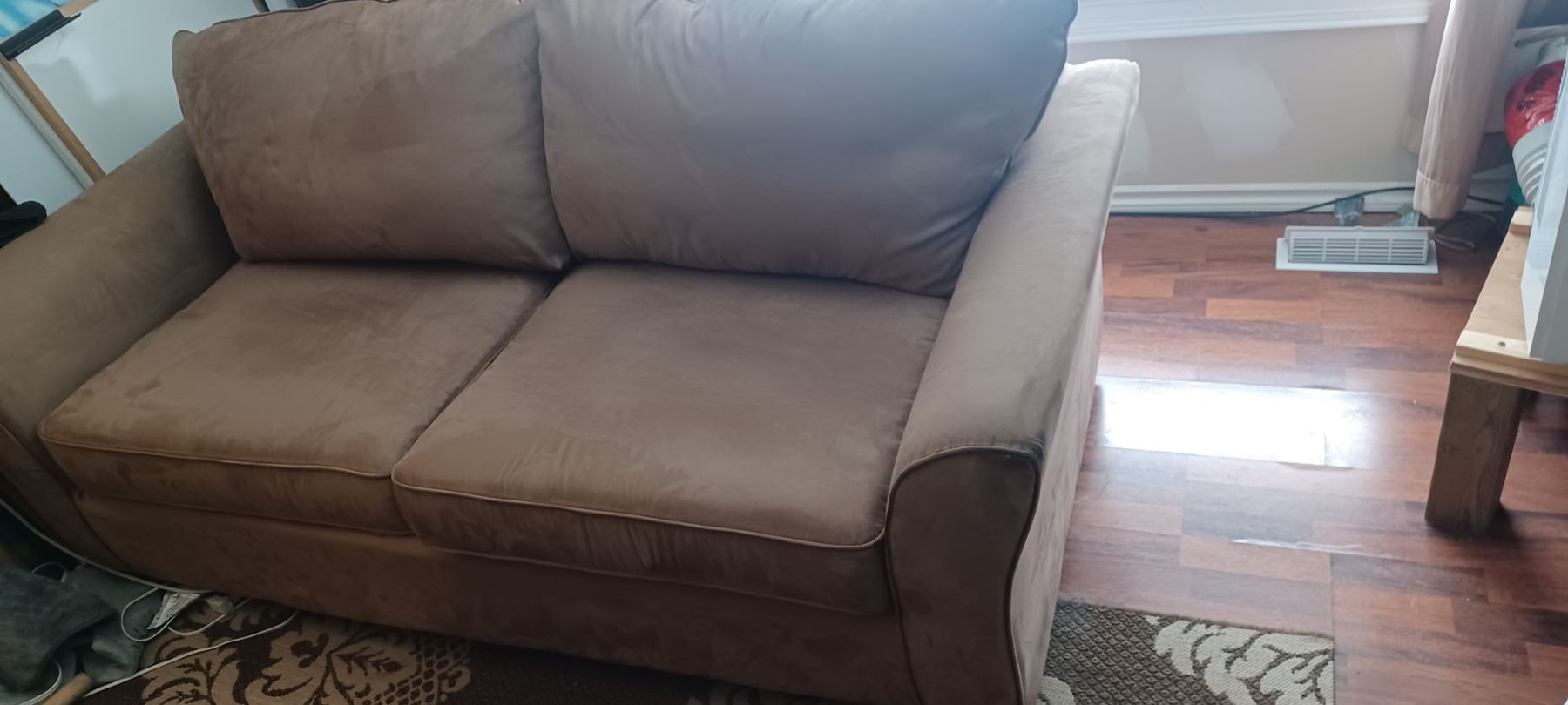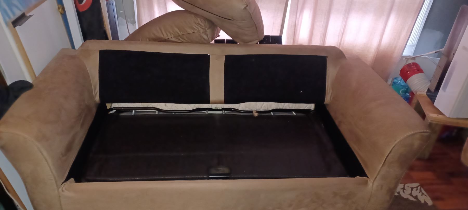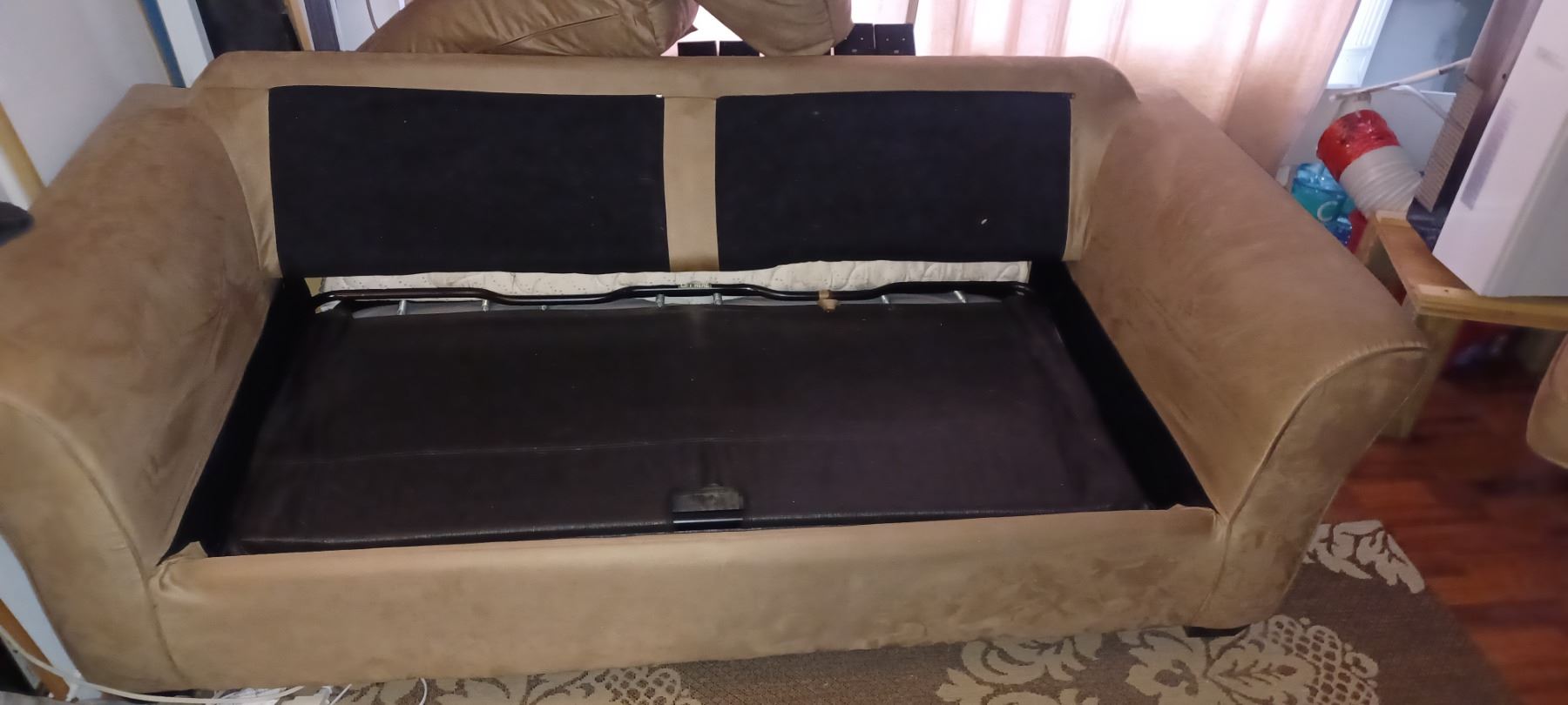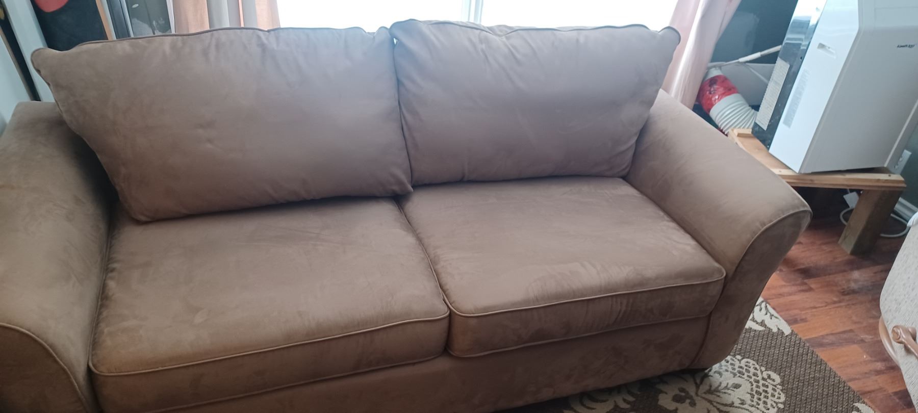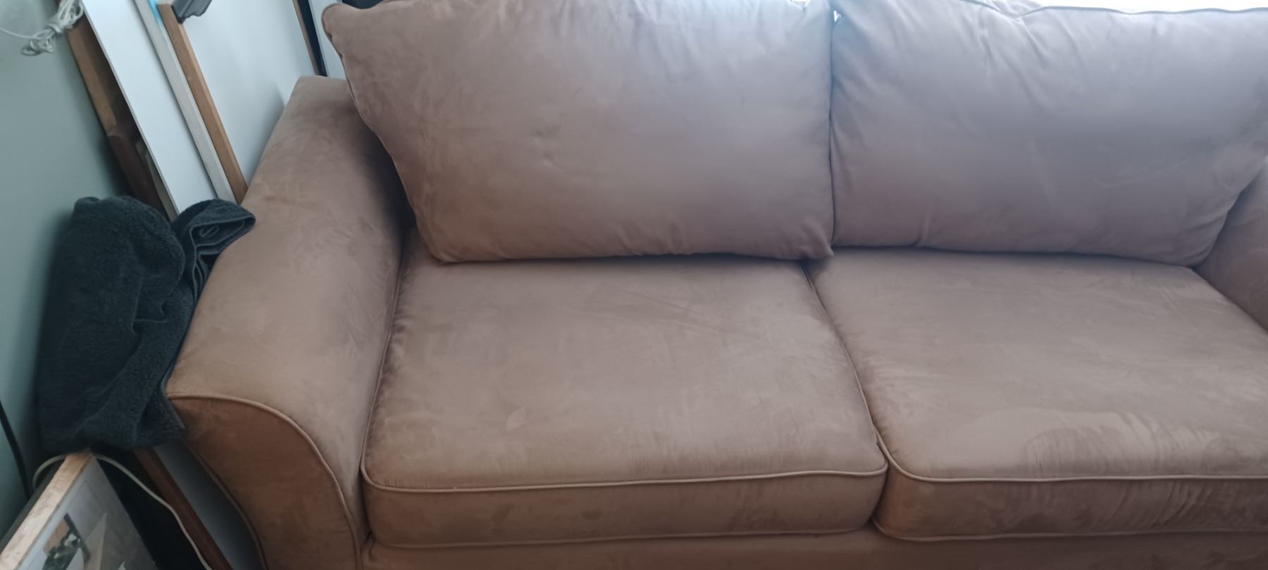 BEIGE SOFA/HIDE-A-BED MICRO FIBRE - EXELLENT SHAPE