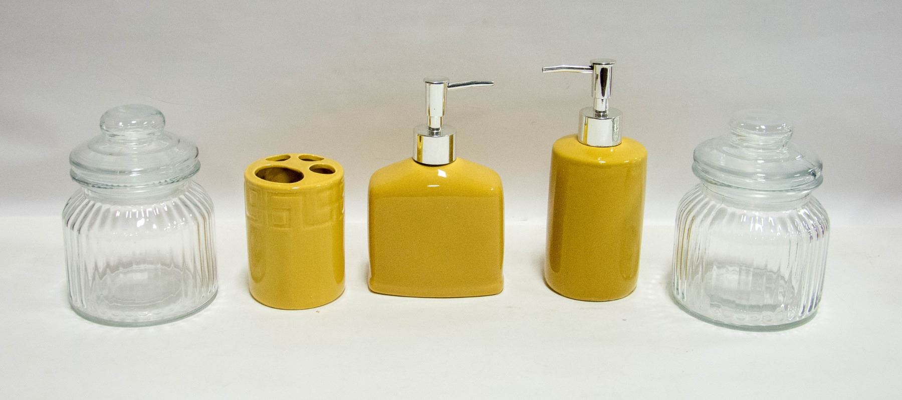 BEIGE/YELLOW BATH VANITY SET / CLEAR BOXES 5PCS