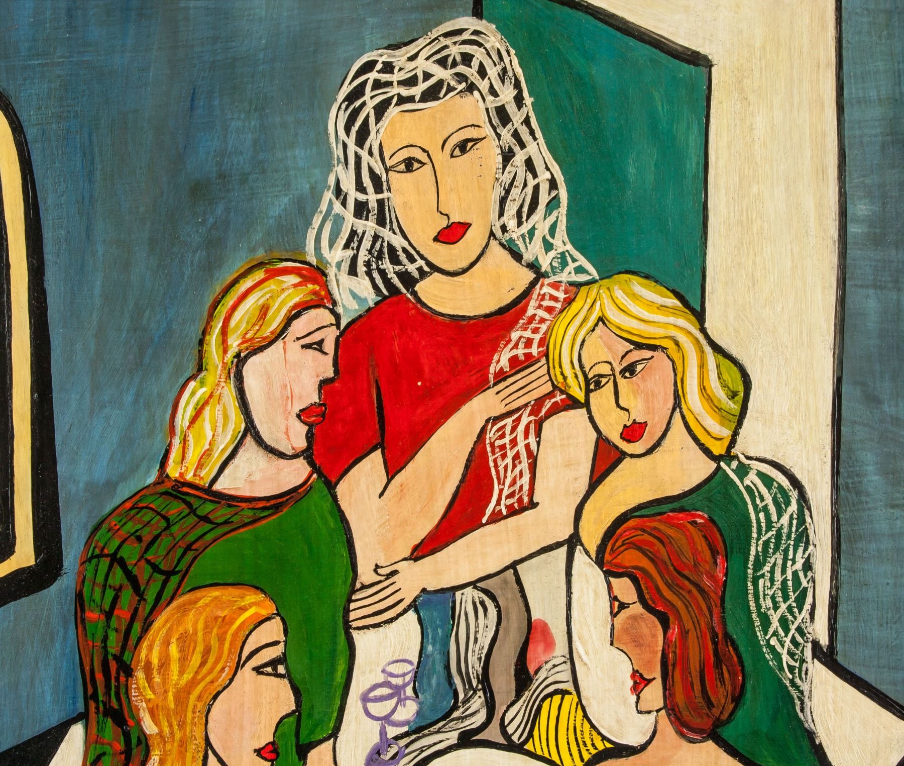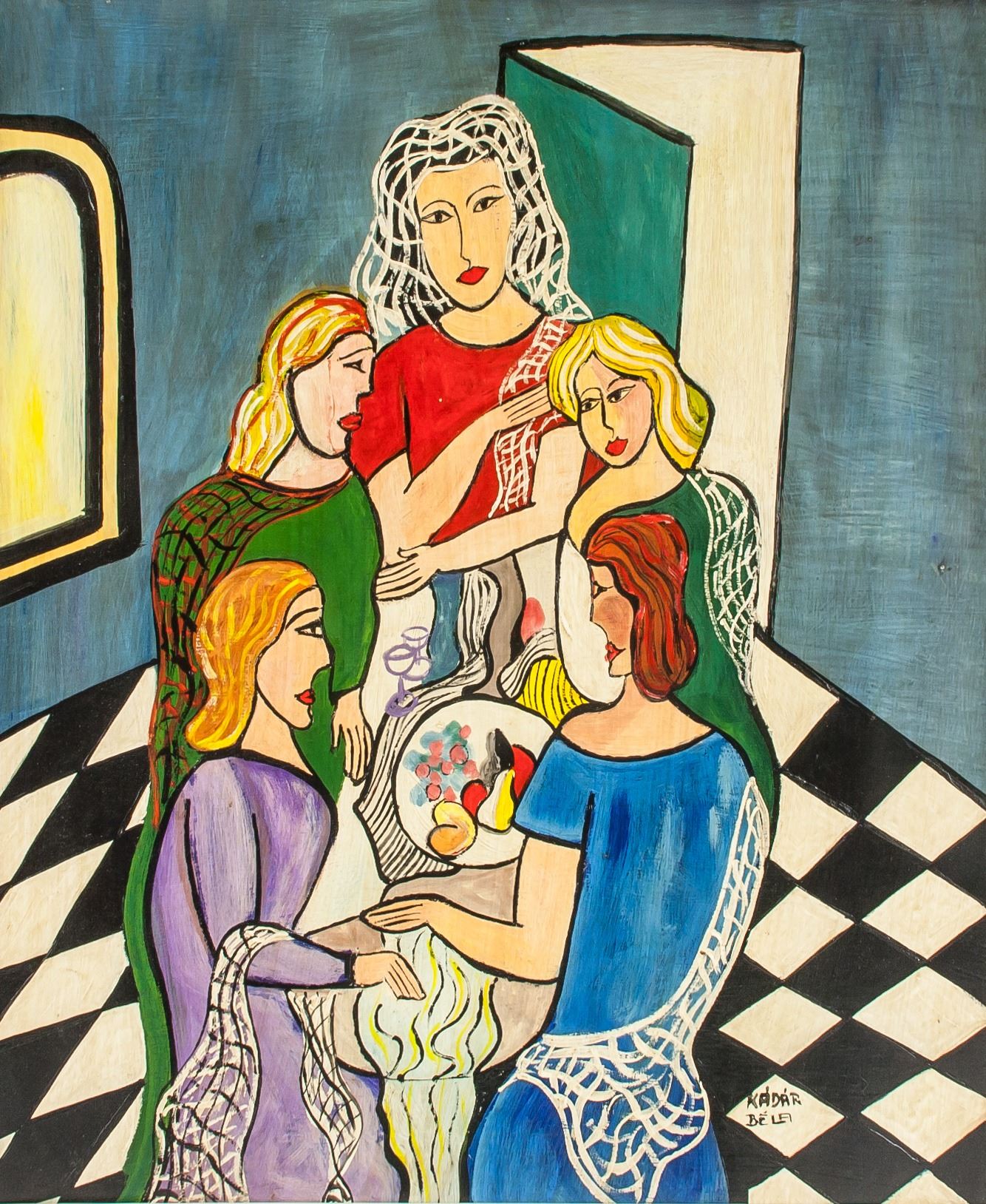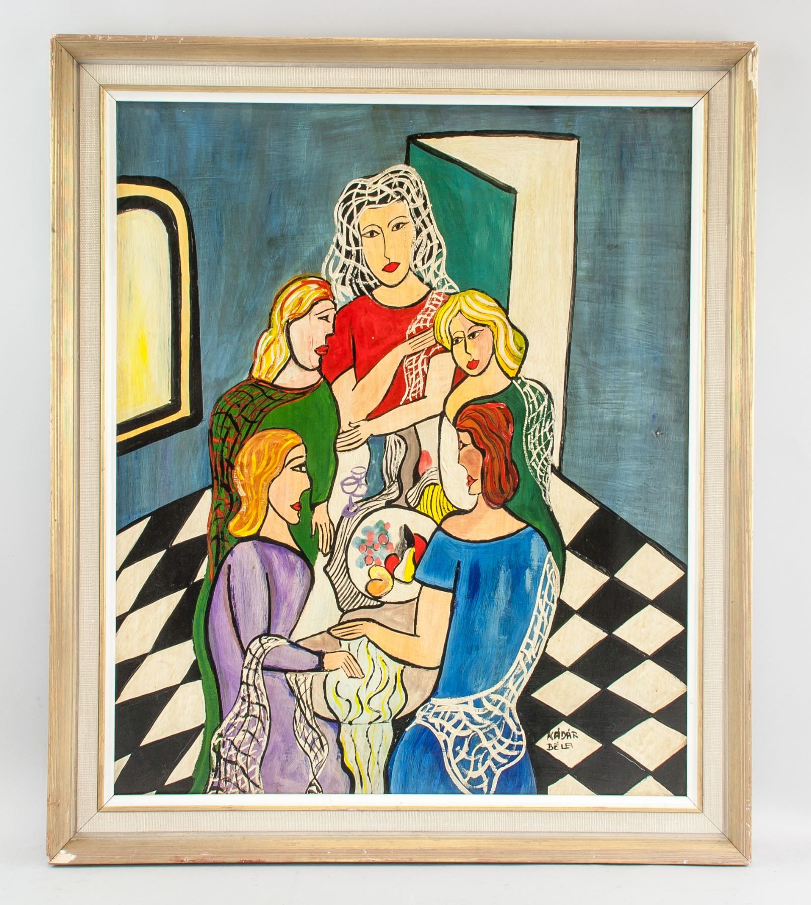 Oil on canvas painting. Featuring a group of women rendered in cubist style. Signed and attr. Bela Kadar (Hungarian, 1877-1956) on the lower right corner. 22.8 x 18.9 in. (58 x 48 cm). Hungarian artist Bela Kadar was born at Budapest and after his father’s death was apprenticed as an iron-turner. Attending the Budapest Academy of Fine Arts (where he won the Kohner Prize in 1910), Kadar’s early work demonstrated an affinity with the Secessionists and the Post-Impressionists. Incorporating and often synthesising stylistic elements of Cubism, Futurism, Surrealism, Constructivism and German Expressionism, Kadar’s decorative and metaphysical subject matter was often based upon Hungarian peasant culture and its ancient legends. Travelling to Berlin in 1923, Kadar began exhibiting with the highly influential Galerie Der Sturm. A meeting at the gallery with American collector Katherine Dreier lead to his work being included in the 1926 and 1928 Société Anonyme exhibitions at the Brooklyn Museum in New York organised by Dreier and the artists Man Ray and Marcel Duchamp. Politically left wing, Kadar spent a year in the Budapest ghetto (1944-45) where he managed to render almost 50 drawings about the pain and suffering he endured. However, he survived the war as one of Hungary's greatest modern artists. PROVENANCE: Private collection (Austria)