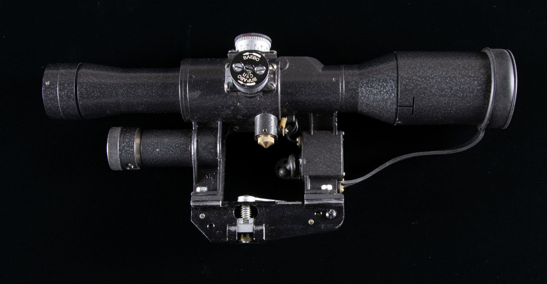 POSP scope mfg. in Belarus. Very good optics. Mount has Cyrillic & Inter Ordnance markings. Rear shade cover. CONDITION: scope & mount show light exterior wear. (02-24538-4/MJC). NON-GUN. $300-500.