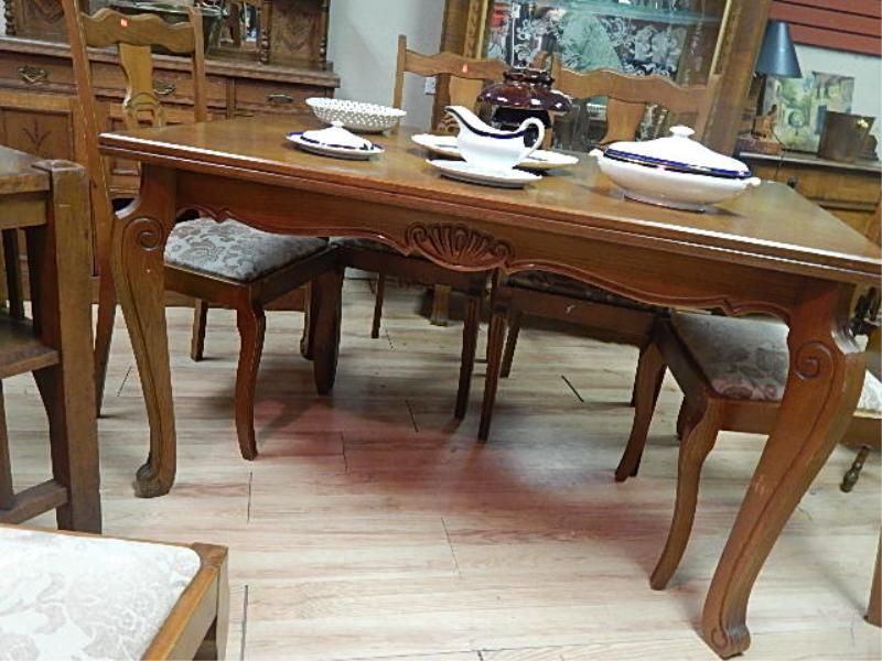 BELGUIM OAK DINING TABLE - DOUBLE DRAWER LEAFS - SOLID WOOD - AND 6 CHAIRS