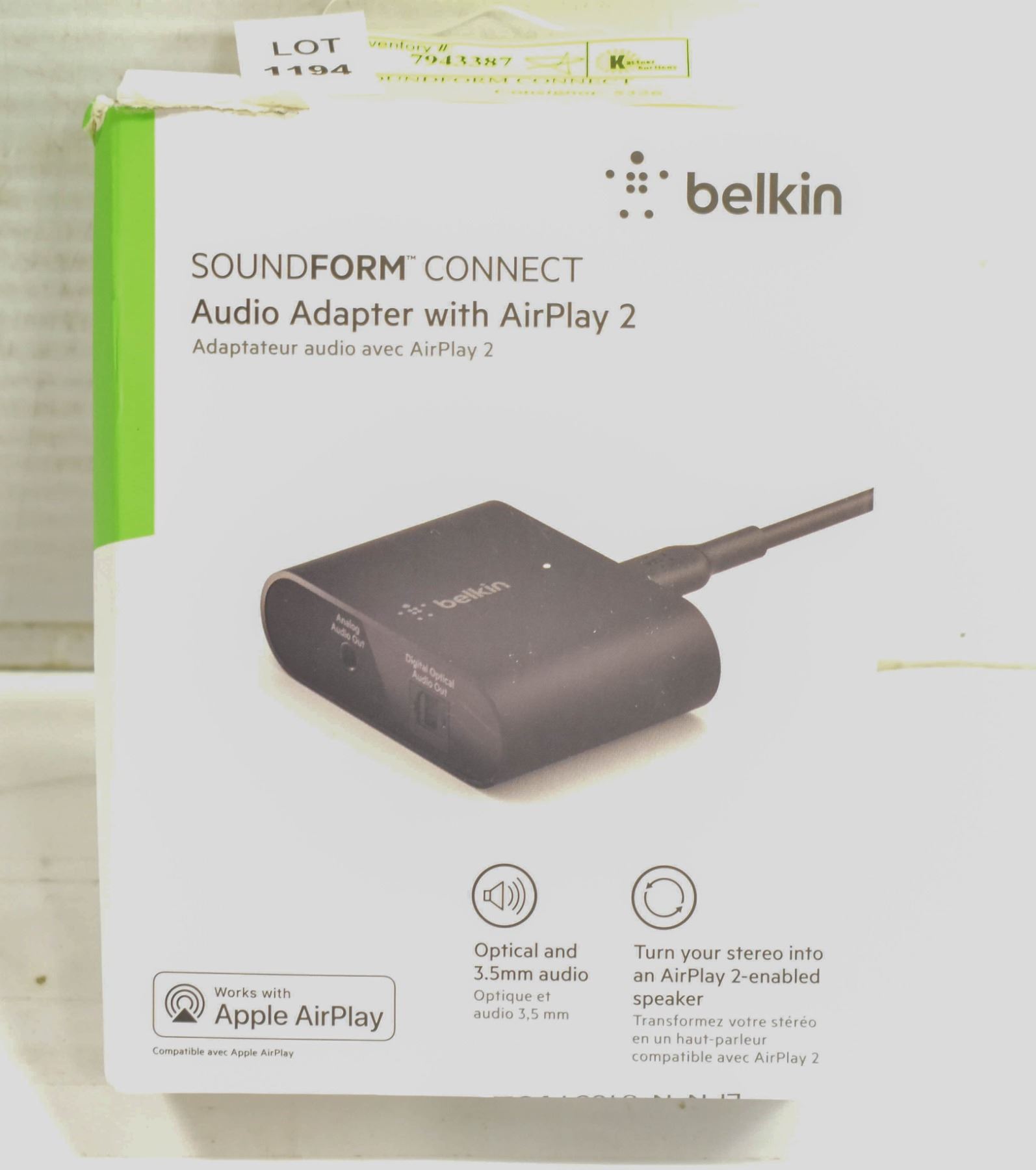 AIRPLAY 2 AUDIO ADAPTER **ALL ITEMS MUST BE REMOVED BY 5PM SATURDAY, MARCH 18TH 2023. ALL REMAINING ITEMS WILL BE SUBJECT TO A $6.00 PER DAY STORAGE CHARGE. ANY ITEMS REMAINING AFTER MONDAY, APRIL 3RD, 2023 WILL BE CONSIDERED FORFEITED. NO REFUNDS WILL BE ISSUED FOR FORFEITED ITEMS. TO SCHEDULE A PICK UP APPOINTMENT CLICK HERE