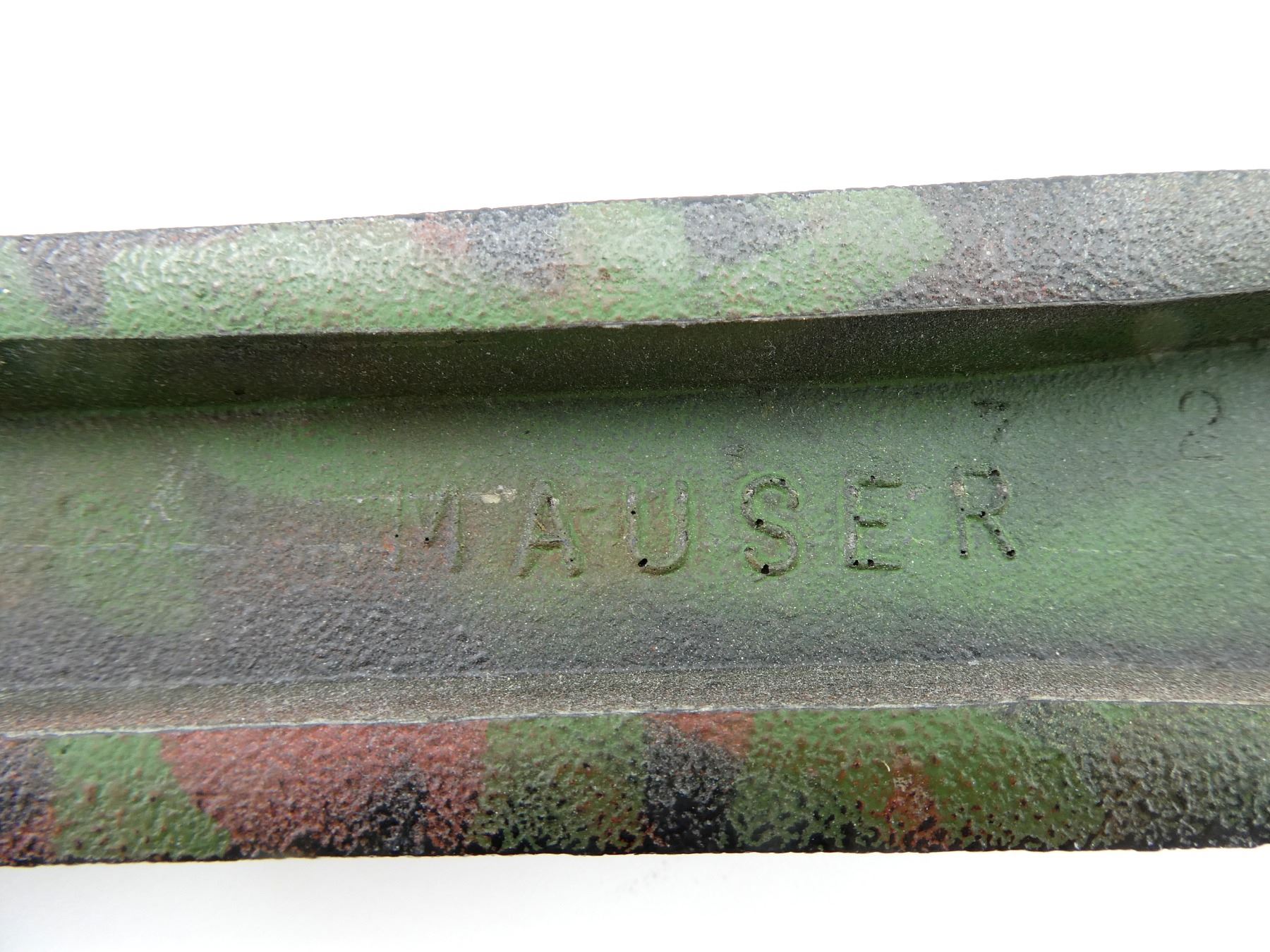 (1) CAMO POLYMER CONSTRUCTION, CHECKERED, MARKED "MAUSER", ETC., WITH RECOIL PAD, OVERALL LENGTH APPROX. 30 7/8". MAY REQUIRE FITTING. SEE PHOTOS.