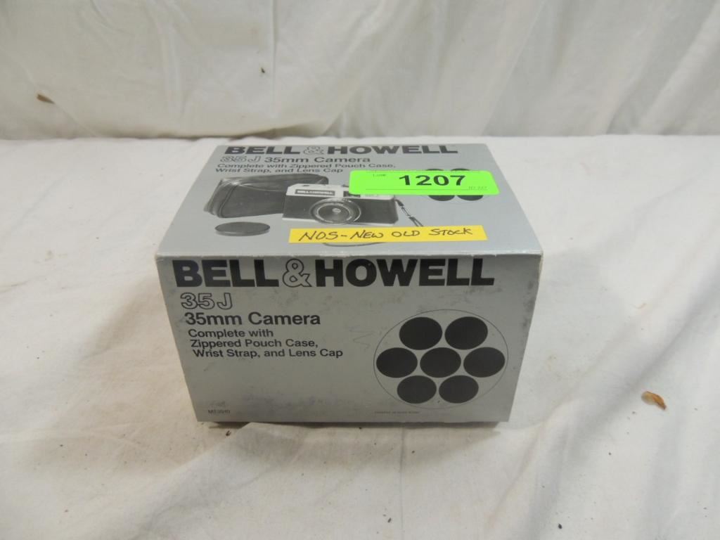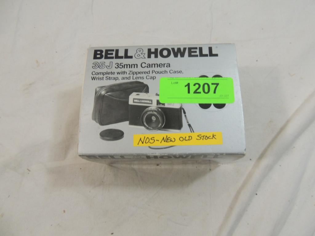 NEW IN BOX VINTAGE 35 MM CAMERA 35J COMPLETE WITH ZIPPERED POUCH CASE, WRIST STRAP, AND LENS CAP AS SHOWN SEE PHOTO FOR MORE DETAILS.