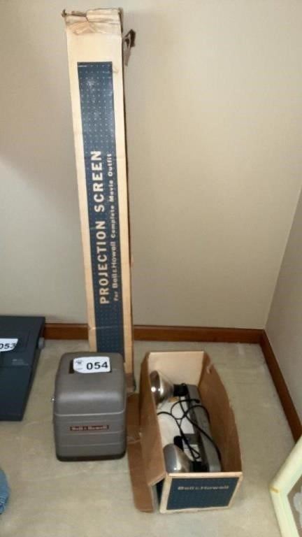 BELL HOWELL PROJECTOR, SCREEN, LIGHTS