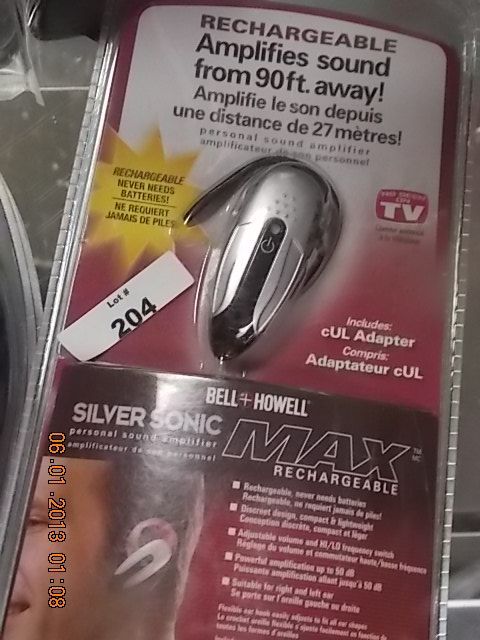 BELL & HOWELL SILVER SONIC - RECHARGEABLE AMPLIFIES SOUND FROM 90 FT