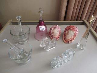 BELL, MORTAR & PESTAL, AVON BOTTLES, 2 ITALIAN HAND DESIGNED SEA SHELLS