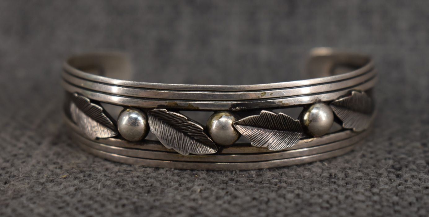 1970's Bell trading company sterling silver leaf design has hallmark for bell trading .5" x 5.25" x 1.5" total weight 18 grams