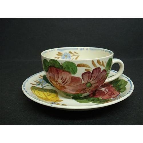 BEAUTIFUL HAND PAINTED CUP AND SAUCER SET, MADE IN ENGLAND AND ENTITLED: NELLE FIORE SOLIAN WARE SIMPSONS POTTERS LTD., COBRIDGE ENGLAND # 521,