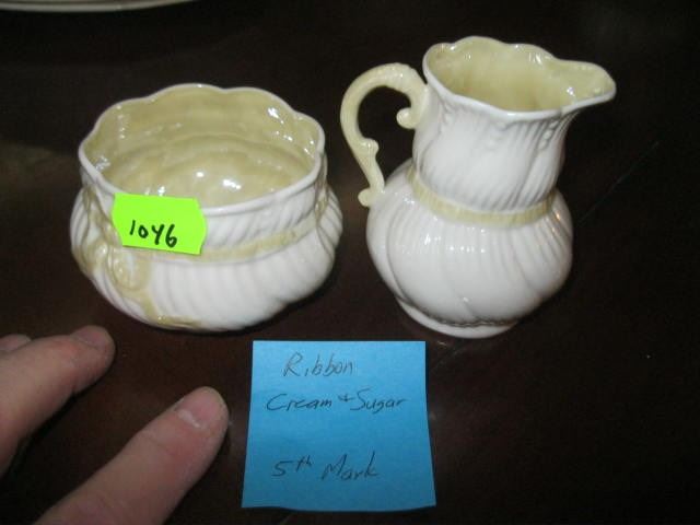 BELLEEK RIBBON CREAM & SUGAR - 5TH MARK