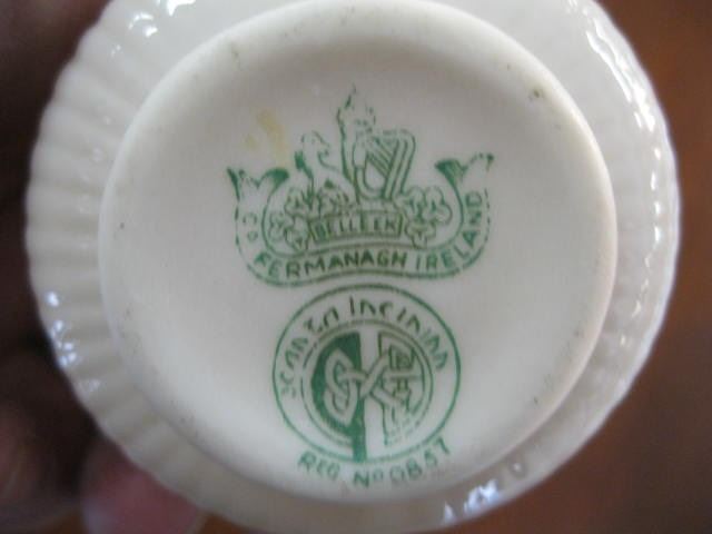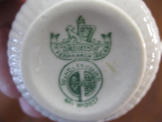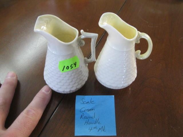 BELLEEK SCALE W/2 CREAMERS WITH ROUND HANDLE & SQUARE