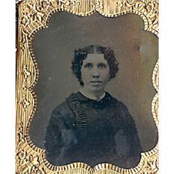 Nice 1/6 plate tintype of a woman, in decorated scalloped mat. Black case is flawless.