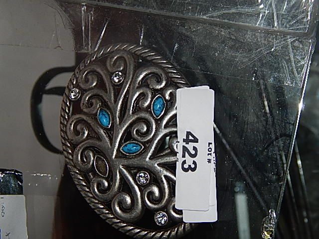 BELT BUCKLE - TURQUOISE & RHINESTONE - 1 MISSING