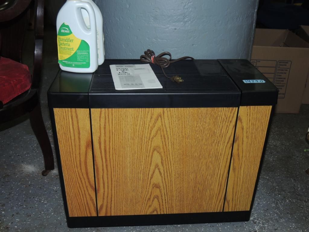 OAK BURL 2 SPEED WITH AIR CARE. HUMIDIFIER BACTERIA TREATMENT BOTTLES. MANUAL INCLUDED AS SHOWN. SEE PHOTO FOR MORE DETAILS.