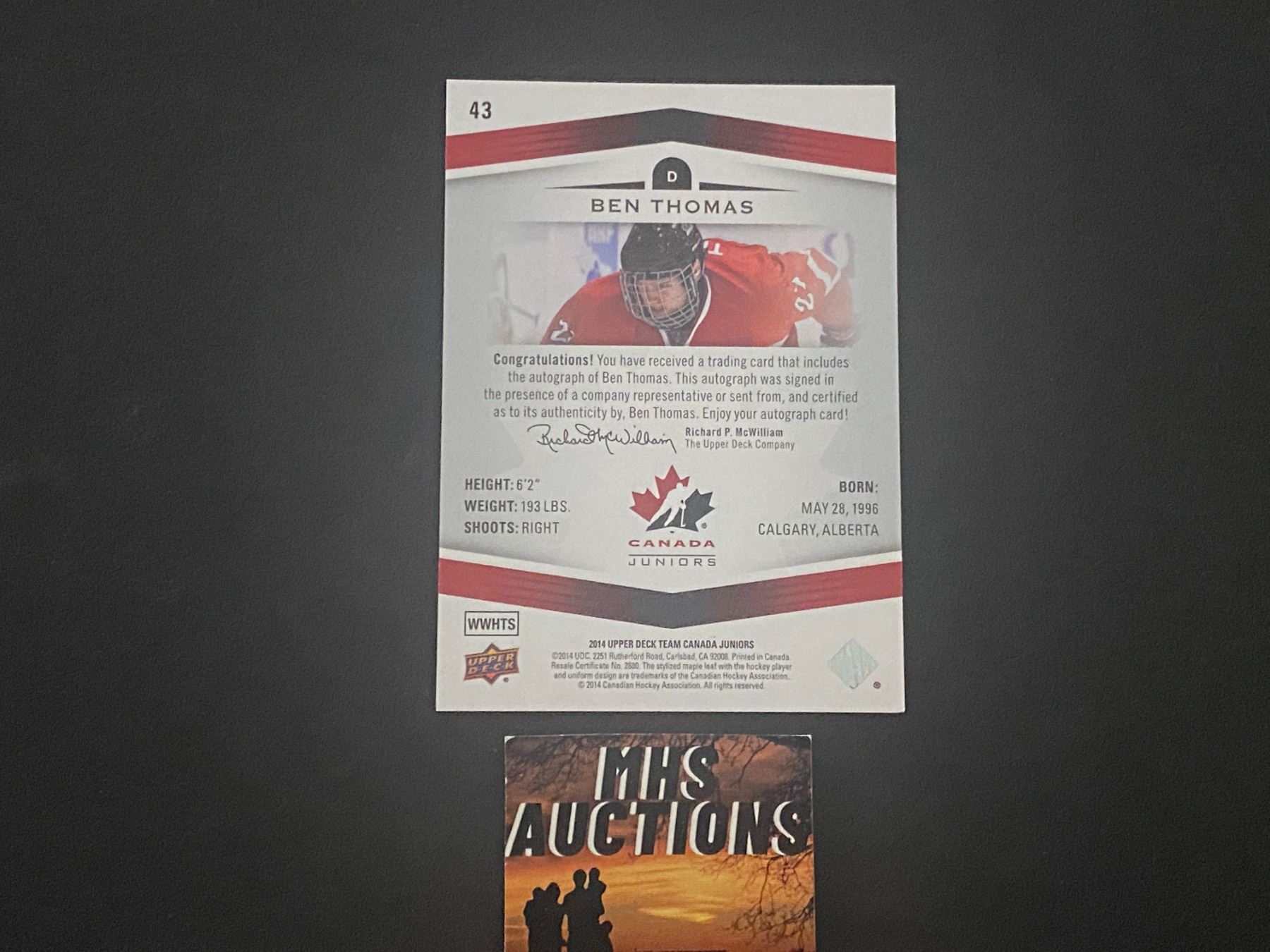 BEN THOMAS AUTOGRAPHED 2014 UPPER DECK TEAM CANADA HOCKEY CARD