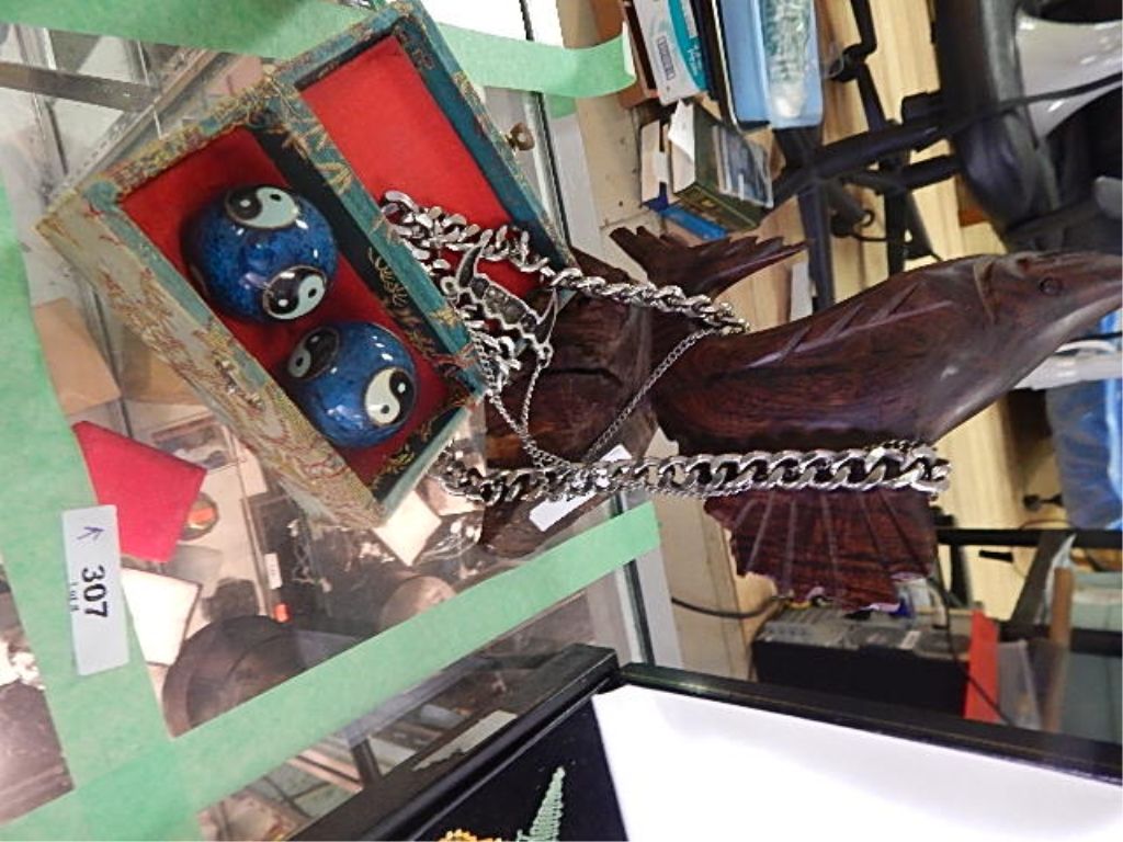 BEN WA BALLS, CARVED SWORD FISH & 2 NECKLACES