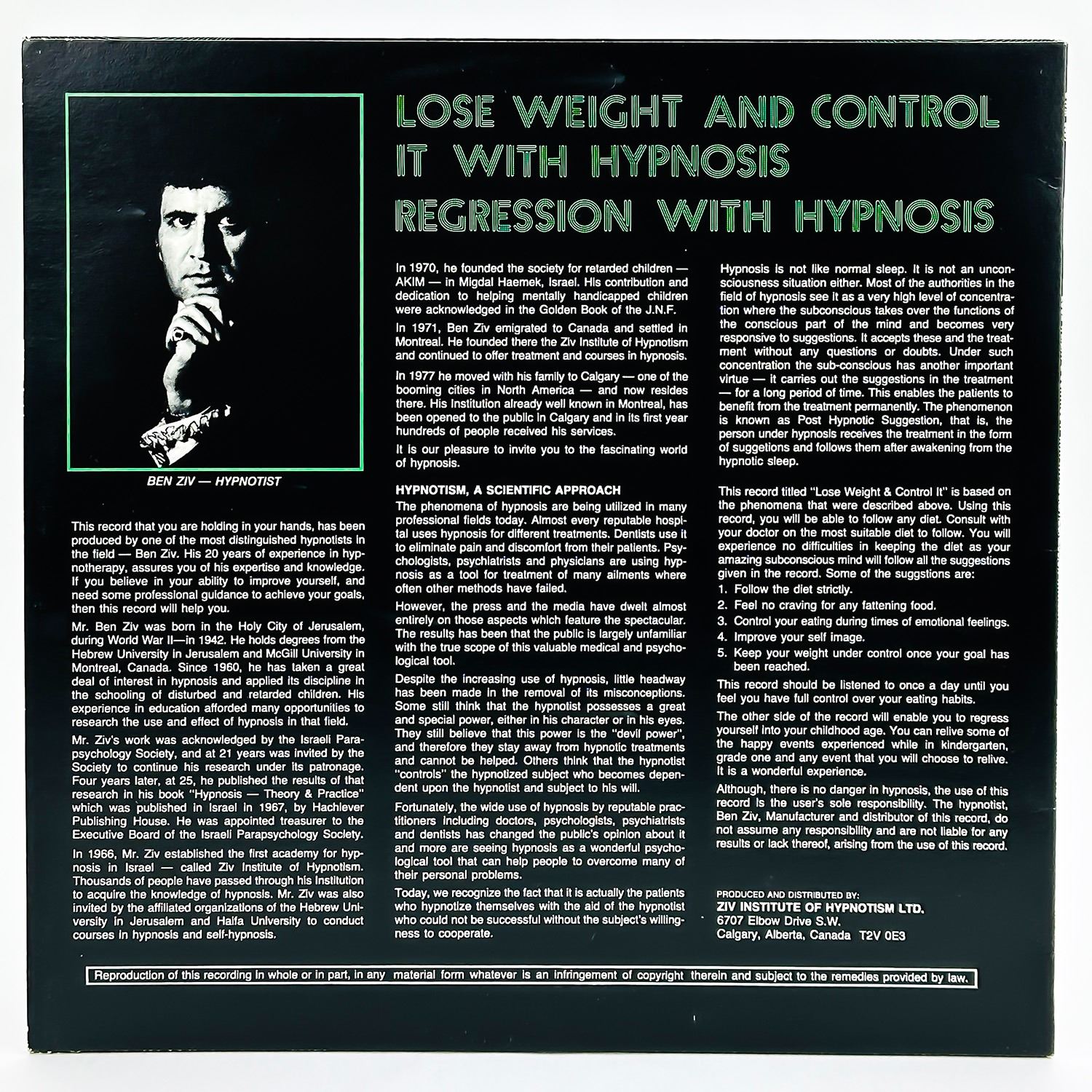 #8702 - LOSE WEIGHT AND CONTROL IT WITH HYPNOSIS - REGRESSION WITH HYPNOSIS - BEN ZIV HYPNOTIST. NON-MUSIC, THERAPY. ZIV INSTITUTE OF HYPNOTISM LTD. 6707 ELBOW DRIVE S.W., CALGARY, ALBERTA, CANADA - DWM 3307