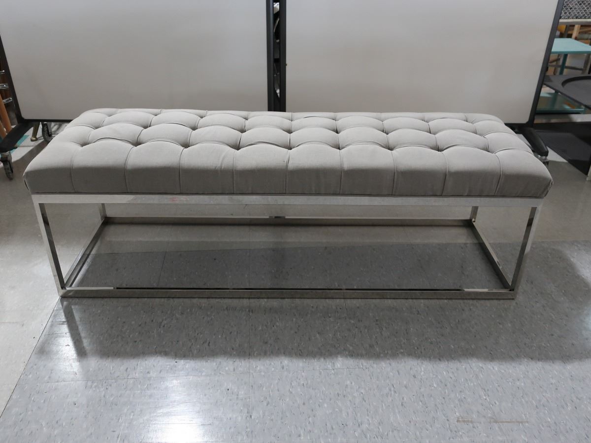 BENCH 58" X 19" X 18" GRAY FABRIC, METAL BASE