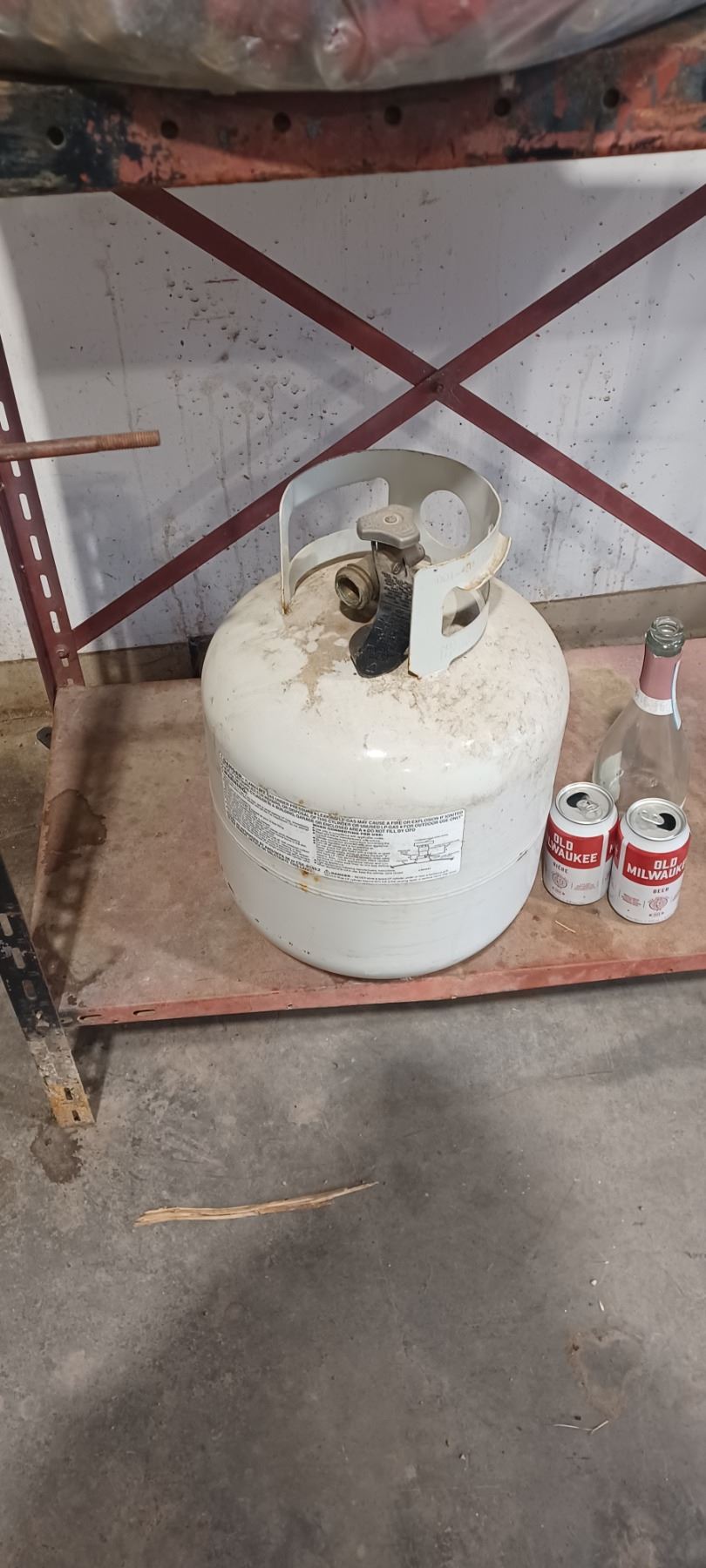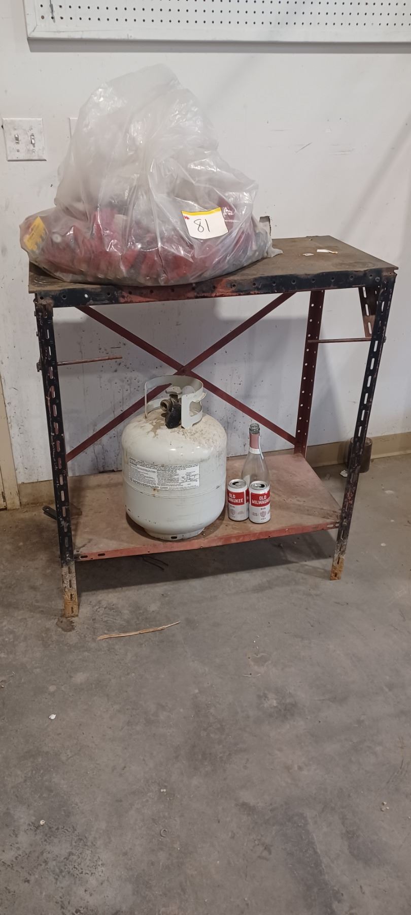 BENCH C/W 20# PROPANE BOTTLE AND BAG OF 12GA CASES