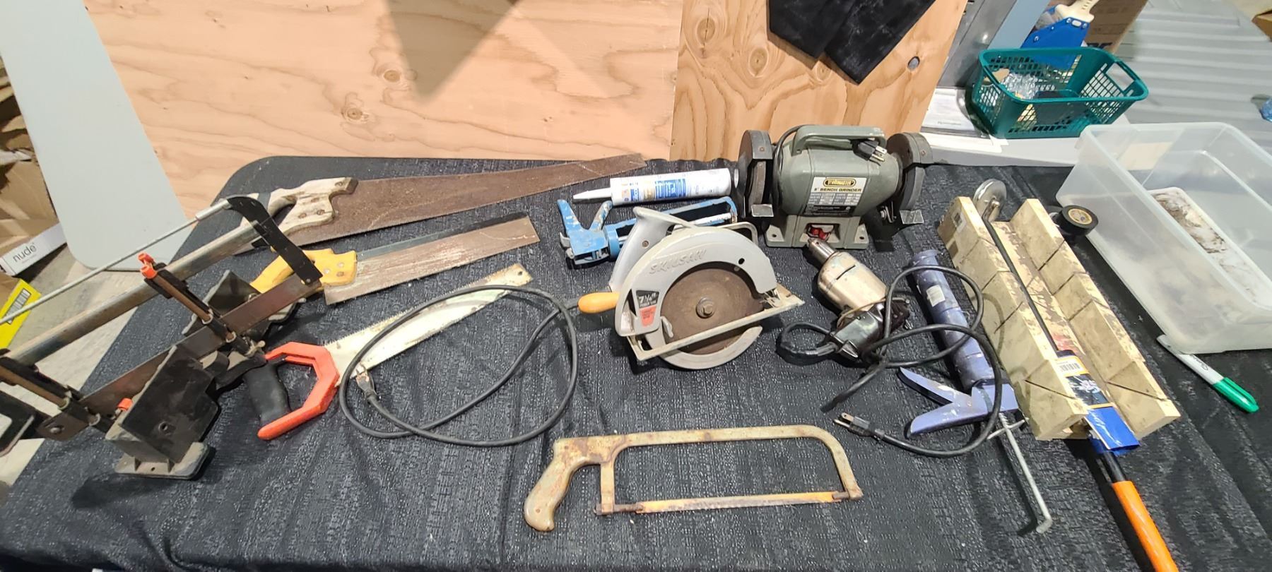 BENCH GRINDER, SAWS, DRILS AND PICKUP MAGNET