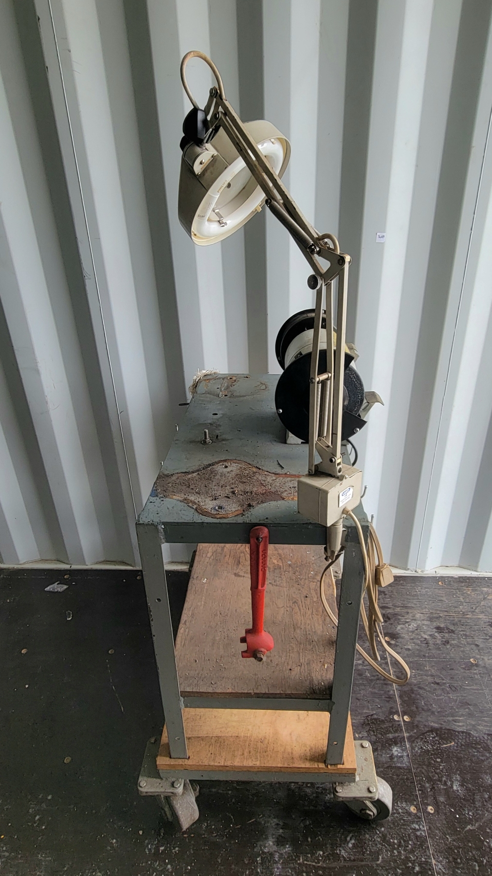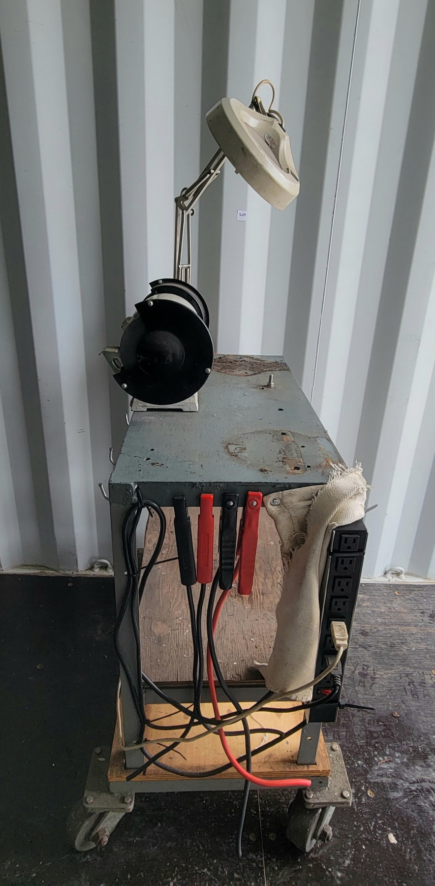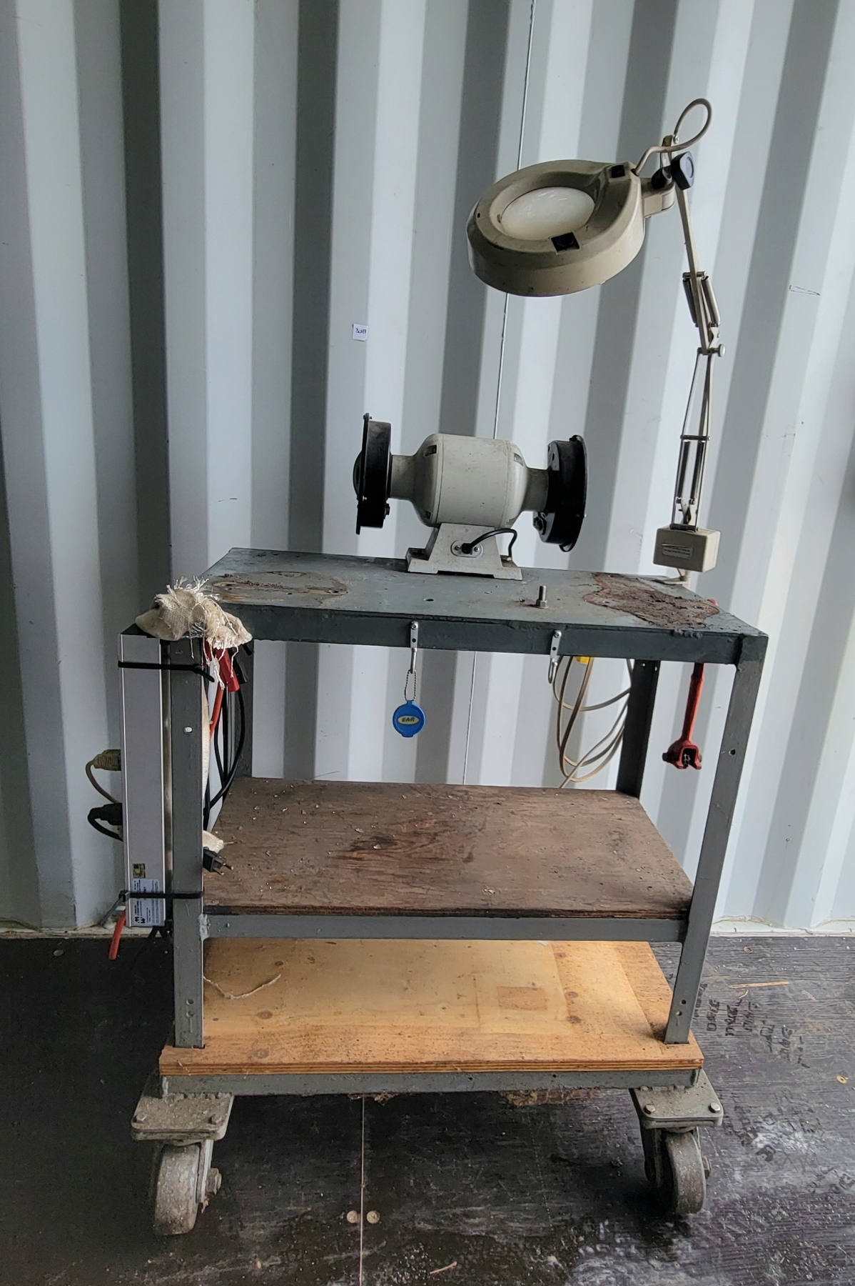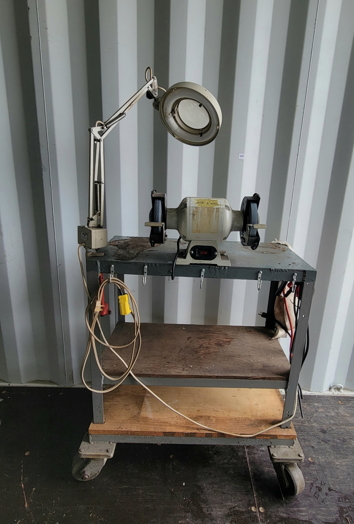 NOTE: NO MFG MARKED. 15 X 30 X 43IN - WORKING WHEN TESTED - 1/2 HP - 3450 RPM - 1/2" ARBOR GRINDER