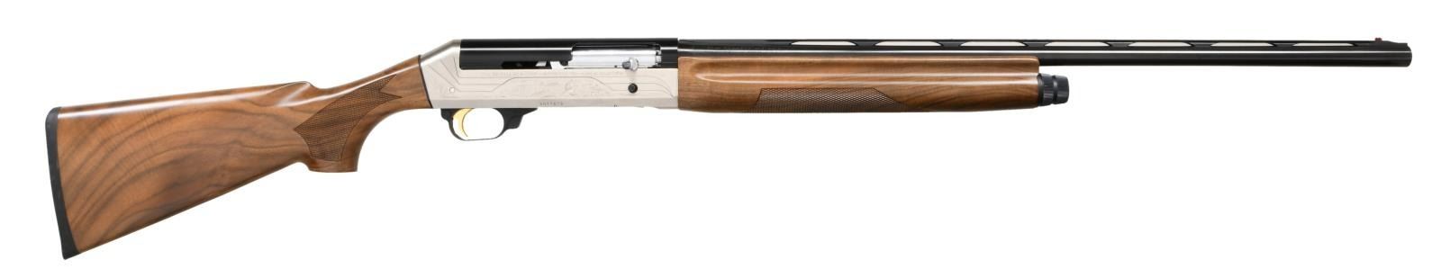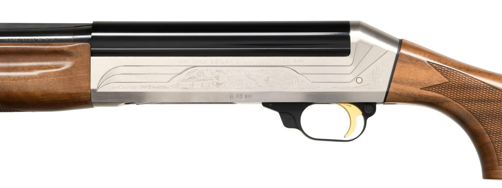 Cal. 20 Ga. 3". S# X011616. Bbl. 26" VR choked IC. Red fiber optic front sight. Armi operating system. Brightly finished receiver w/ factory engraved game scenes. Blued bbl. Gold trigger. Checkered walnut stock & forend w/ factory recoil pad. LOP: 14 1/4". UNATTACHED ACCESSORIES: factory box matching numbered to gun w/ hardcase, three spare chokes, choke wrench & manual. CONDITION: all aspects rate very good plus or better w/ a couple dings in stock, a few light handling marks & some dust staining on recoil pad. PROVENANCE: The Collection of Gun Sport Ltd. owned by Jon R. Thomas. (23-3436/MJC). MODERN. $1,200-1,800.
