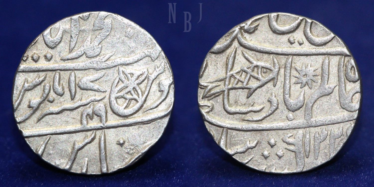BENGAL PRESIDENCY: AR Rupee. Muhammadabad Benares, AH1229 year 17/49. East India Company issue, fish and flower privy (darogah) marks. (11.34gm, 23mm) Good Very Fine.