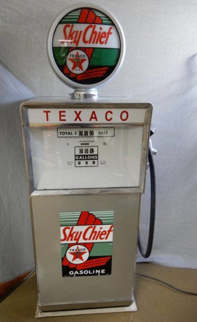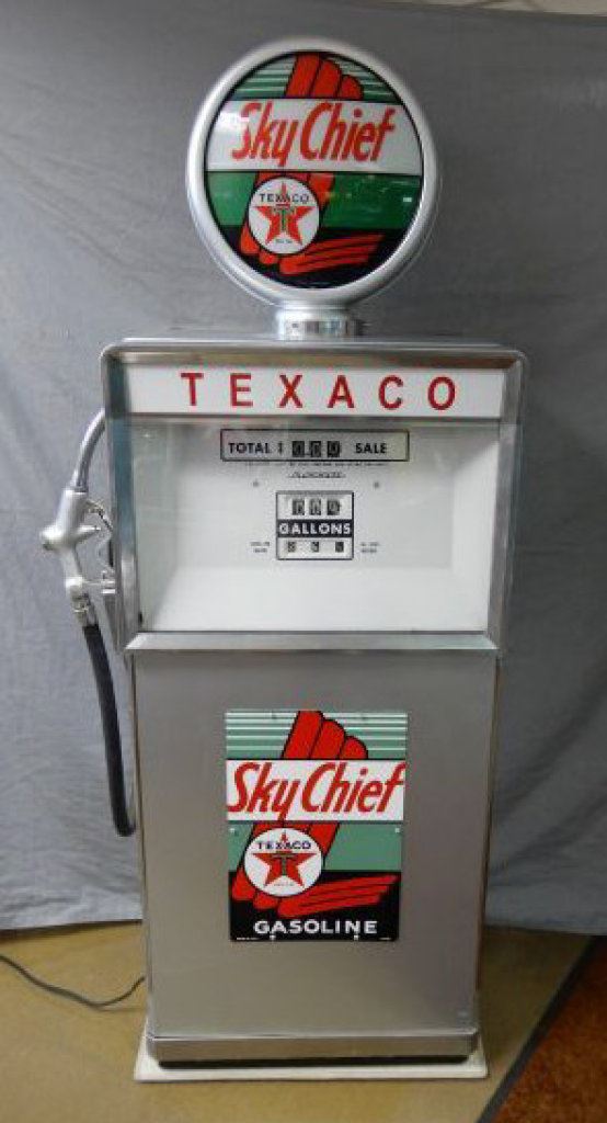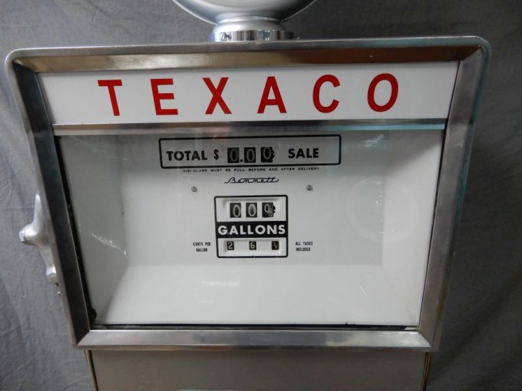 BENNETT GAS PUMP RESTORED TO TEXACO FIRE CHIEF METAL GLOBE REPRO LENSES LIGHTS UP LOCATION: LOWER RIGHT