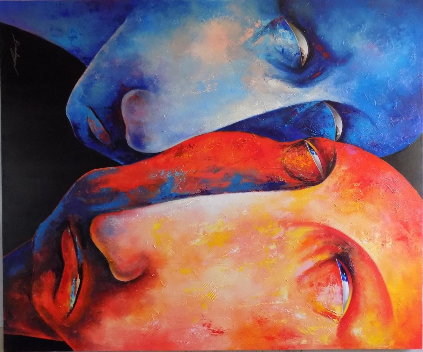 Artist: BERBERYAN . Medium: Acrylic and Mixed Media on Canvas. Title: Empathy II. Size (Unframed): 60" x 40". Certificate of Authenticity: Is included. Reference# 12195.