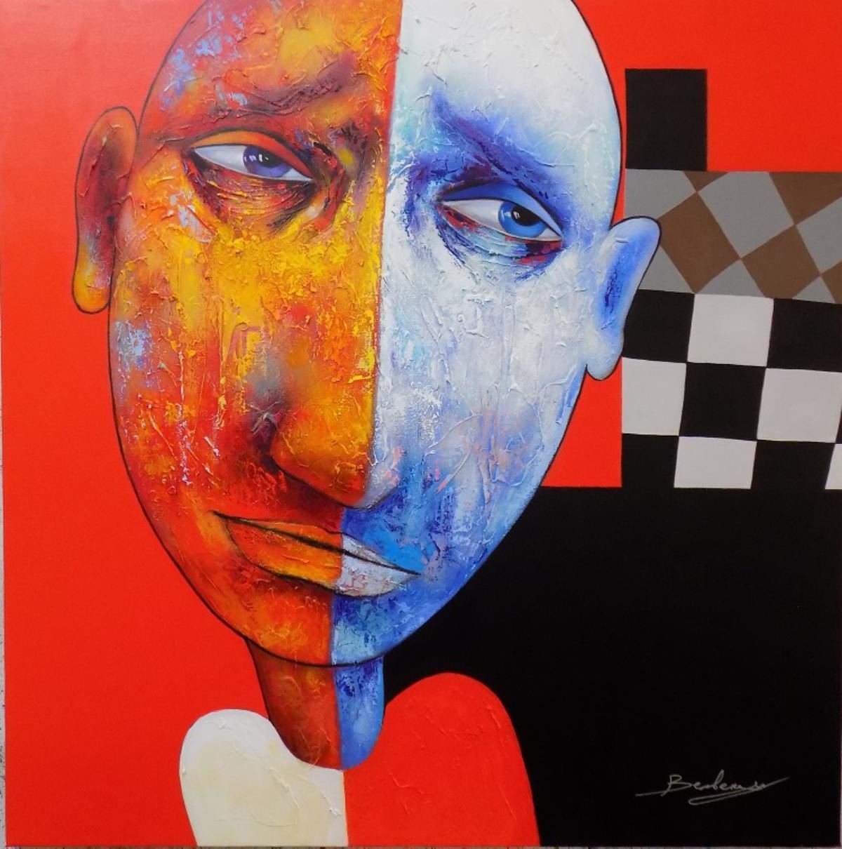 Artist: BERBERYAN . Medium: Acrylic and Mixed Media on Canvas. Title: Half-hearted. Size (Unframed): 30" x 30". Certificate of Authenticity: Is included. Reference# 12197.