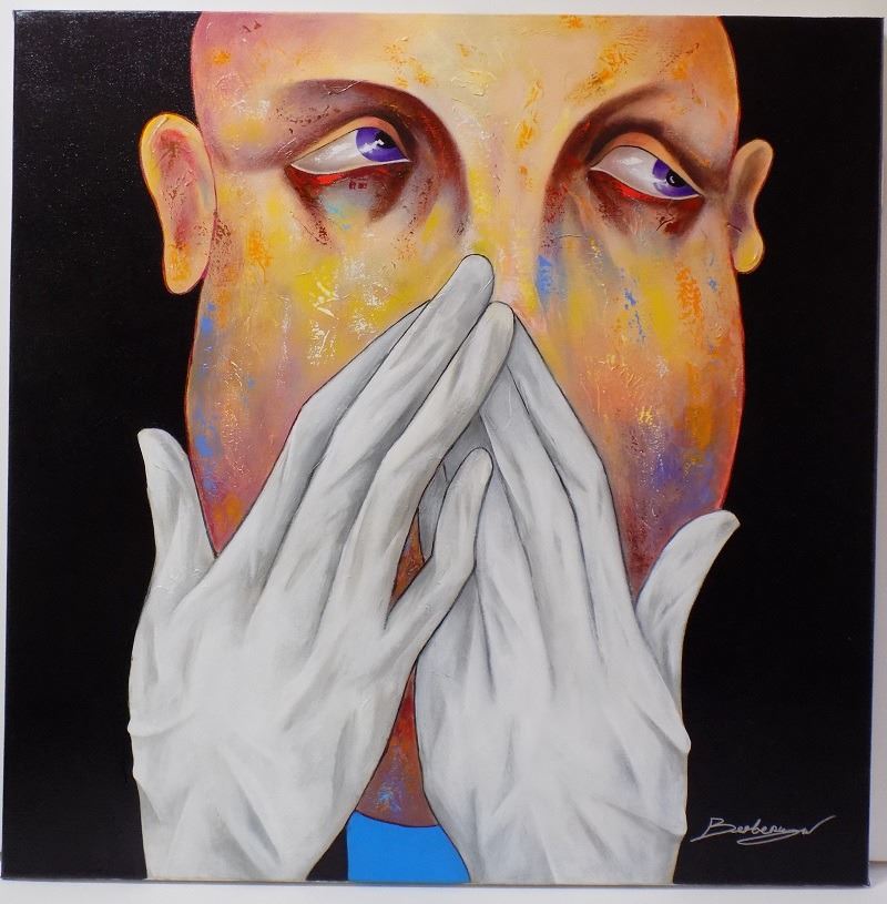 One BERBERYAN Germaphobe. Original Mixed Media on Canvas . Height is 36 inches. Width is 36 inches. The shipping charge for this item is $45.