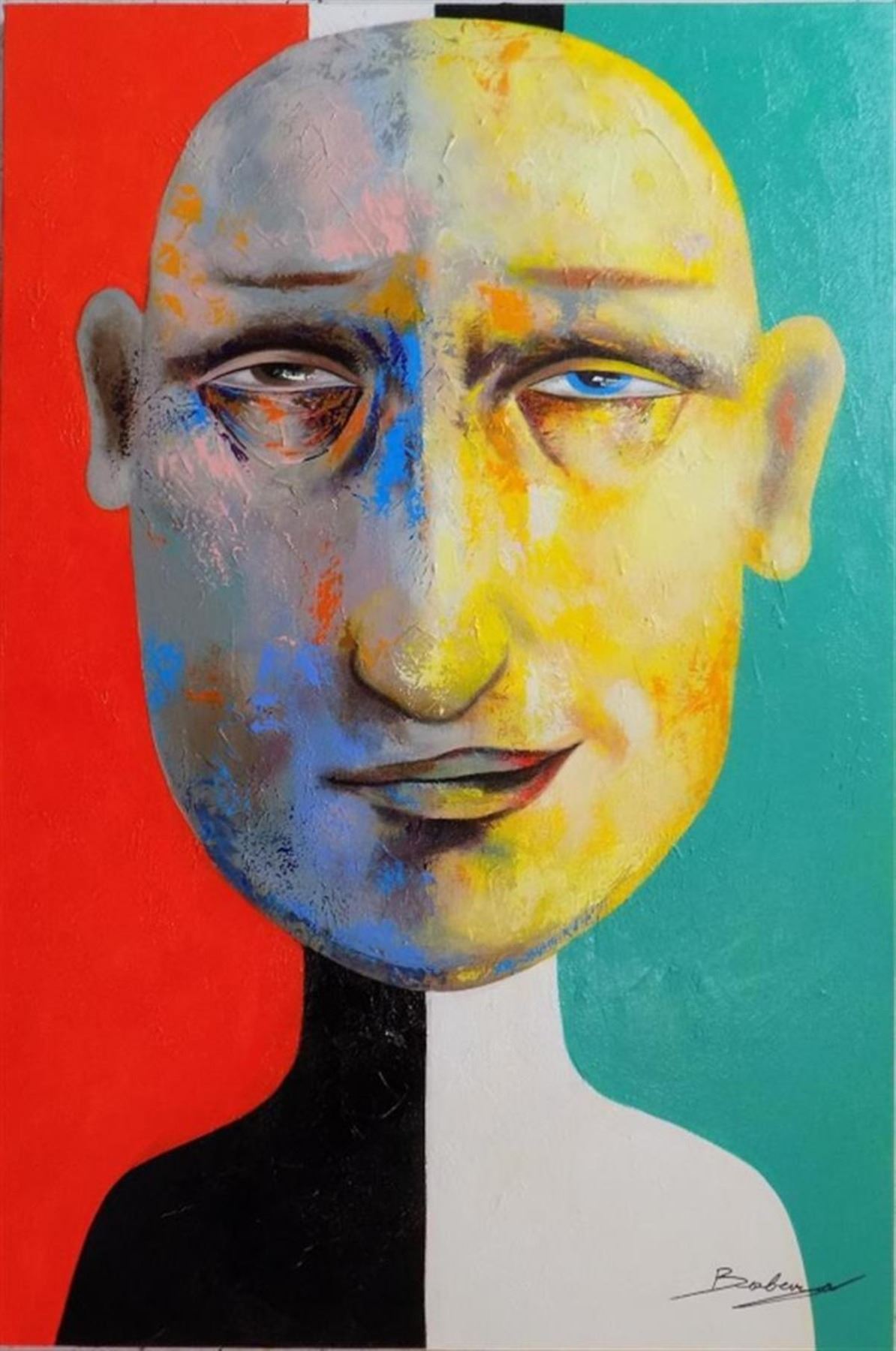 One BERBERYAN "Of Two Minds". Orig. Mixed Media on Canvas