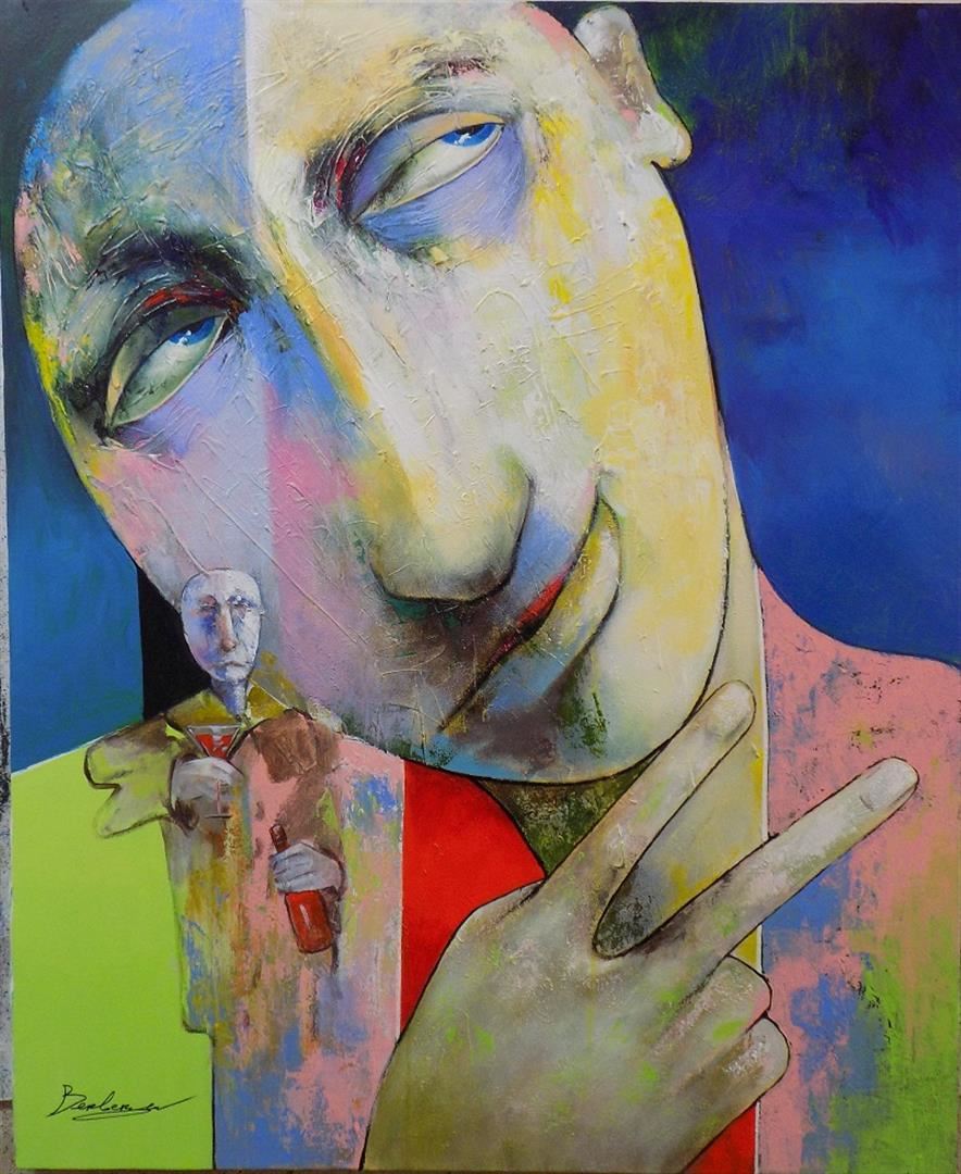 One BERBERYAN "On The Wagon Now" . Orig. mixed Media on canvas