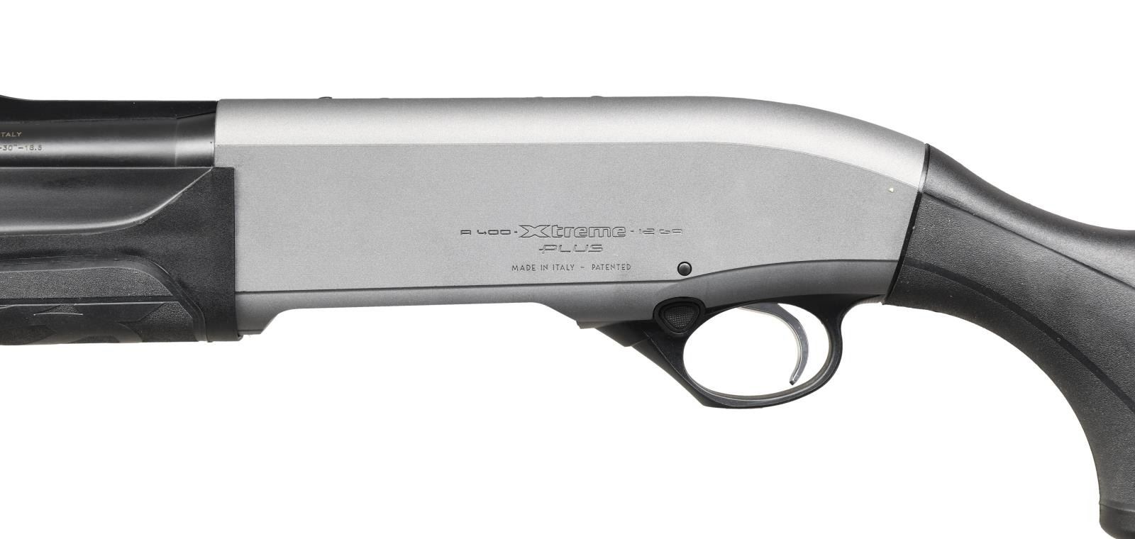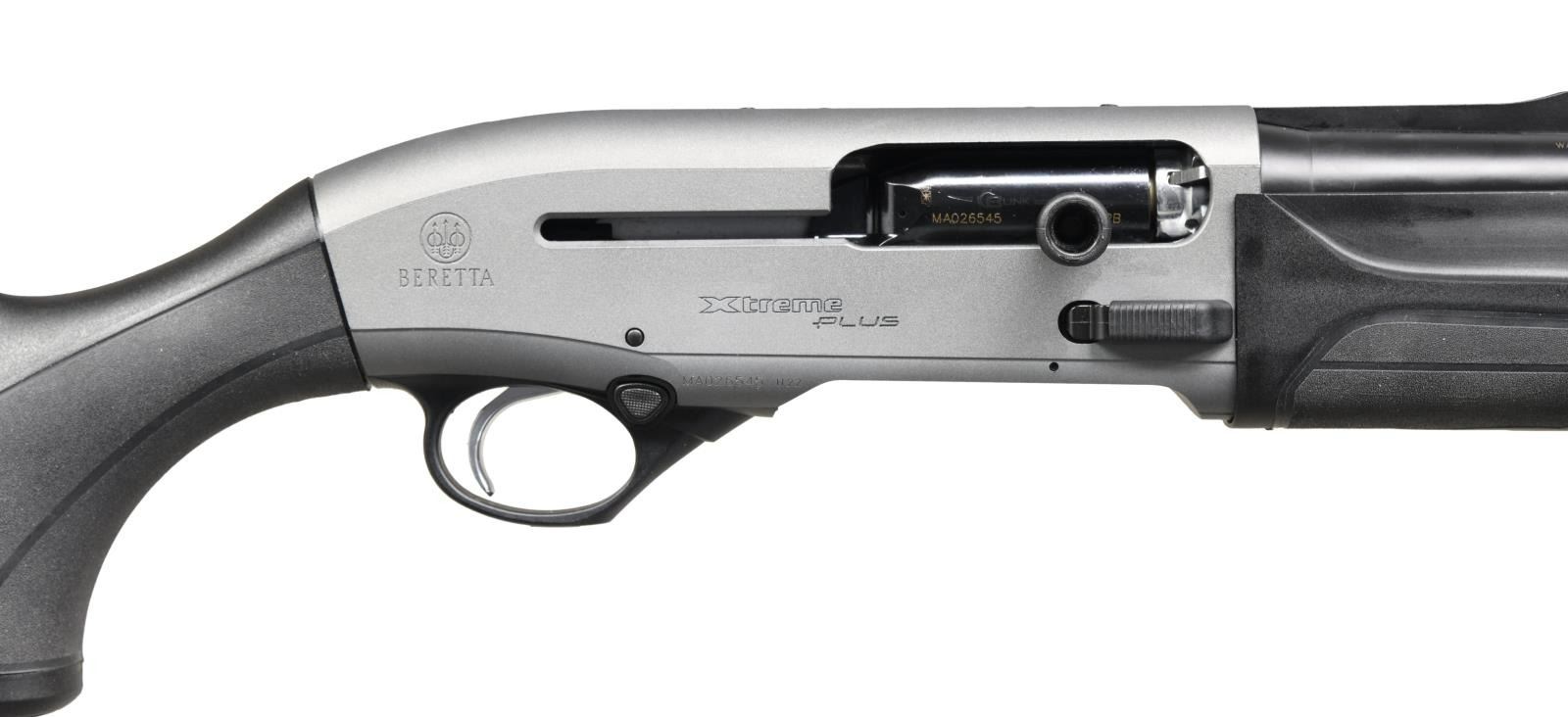 Cal. 12 GA, 2 3/4", 3", & 3 1/2". S# MA026545. Bbl 30". A400 Xtreme Plus semi-automatic shotgun manufactured by Beretta and imported by Beretta U.S.A. Corp. The left side of the barrel exhibits Beretta's manufacturer information above the caliber designation, with Beretta U.S.A. Corp.'s importer information on the right. Receiver exhibits a matte gray finish, with the barrel being blued. Black polymer buttstock and forend with black rubber grip panels. High vent rib barrel with red fiber optic front sight, fitted with a Modified choke. CONDITION: extremely fine, with metal component retaining bountiful amounts of their original factory finishes, exhibiting few minute superficial marks from handling and storage. Brilliant mirror bore. Black polymer and rubber furniture is excellent overall. PROVENANCE: The Collection of Gun Sport Ltd. owned by Jon R. Thomas. (23-3243/MLW). MODERN. $1,000-1,500.