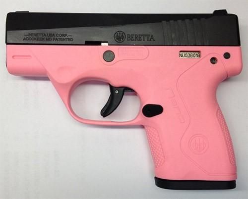 FAMILY:NANO Series MODEL:Nano TYPE:Semi-Auto Pistol ACTION:Double Action Only FINISH:Pronox STOCK/FRAME:Polymer Frame STOCK/GRIPS:Pink Polymer CALIBER/GAUGE:9mm CAPACITY:6+1 BARREL:3.07" OVERALL LENGTH:5.63" SIGHTS:3-Dot Low Profile SAFETY:Ambidextrous Safety ADDL INFO:Reversible Magazine Release ADDL INFO:Comes with 2 Magazines