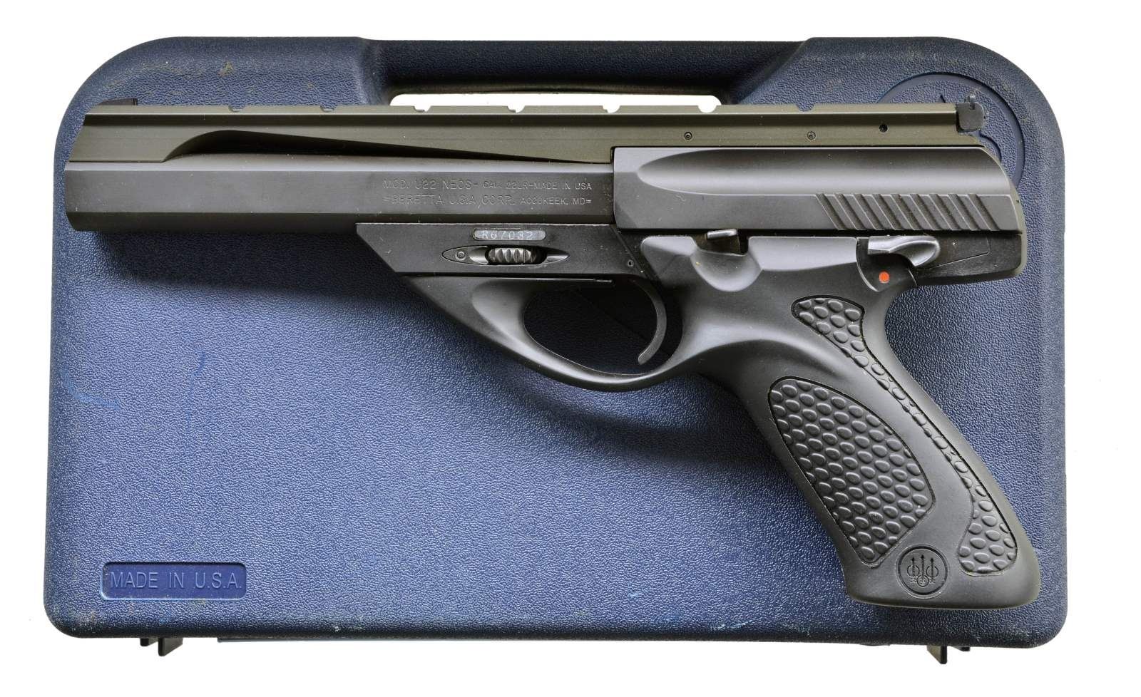Cal. 22 LR. S# R67032. Bbl. 6". Blade front sight. Square notch rear sight w/ white outline. Top mounted Weaver rail. Polymer textured frame. MAGS: 2-10 rd. UNATTACHED ACCESSORIES: unnumbered factory hard case w/ paperwork. CONDITION: frame is near excellent. Upper half retains 98% original finish. Very good plus bore. (22-3943/MJC). MODERN. $200-300.