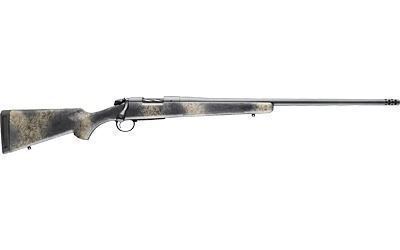 Bridging the gap between the B-14 and Premier Series, Bergara brings you the B-14 Wilderness Series. This series tackles the need for rifles that can withstand the rugged and unforgiving wilderness while blending into those very same elements hence Bergara's hand-painted camouflage stocks with added webbing for increased texture and grip. All Wilderness Series barreled actions feature Sniper Grey Cerakote finishes for advanced protection in extremely harsh weather. The B-14 Wilderness Ridge rifle features an American-style synthetic stock with SoftTouch finish. This rifle is also outfitted with a Bergara Performance Trigger and a hinged floor plate. The world-renowned (#5) Bergara barrel is finished in Sniper Grey Cerakote and features a seamless, omnidirectional, and multi-ported muzzle brake that will reduce felt recoil by up to 35 percent. The Wilderness Ridge is complemented by Bergara's super-smooth B-14 Action, which is a two-lug system with a sliding plate extractor and a coned bolt nose and breech to ensure smooth feeding and extraction of the cartridge. It has been factory drilled and tapped to fit Remington 700 style rings and bases.