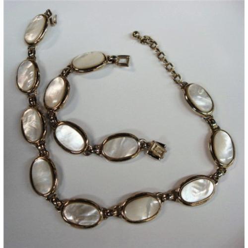 For sale is a gorgeous signed Bergee 2-piece Demi Parure Mother of Pearl set. The necklace and bracelet are just gorgeous. The bracelet has a fold-over clasp.