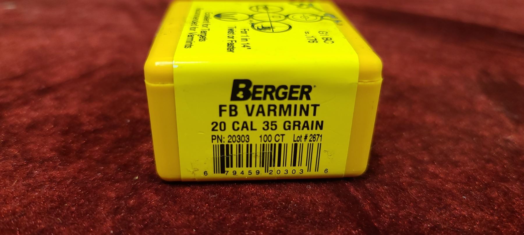 BERGER FB VARMINT 20CAL 35GR QTY 100
