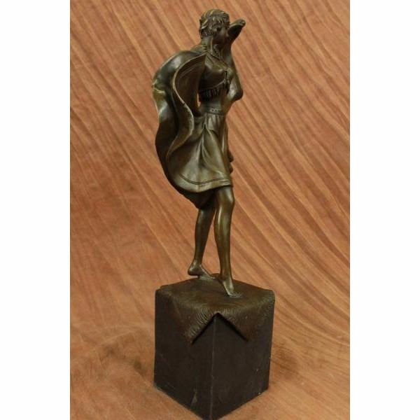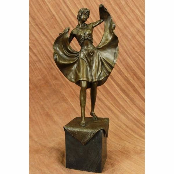 Franz Xavier Bergman (1861-1936). Hot Cast real bronze figure of a dancer with lifting skirt. The ''Oriental rug'' is gracefully draped onto the marble base, and is signed Bergman. Condition : This sculpture is in perfect condition. Bronze Dimensions with Marble Base:Height 18" x Width 9" Marble Dimensions: 4" X 4". Height without base: 13" Weight : 15 LBS Inventory 97STE2275479