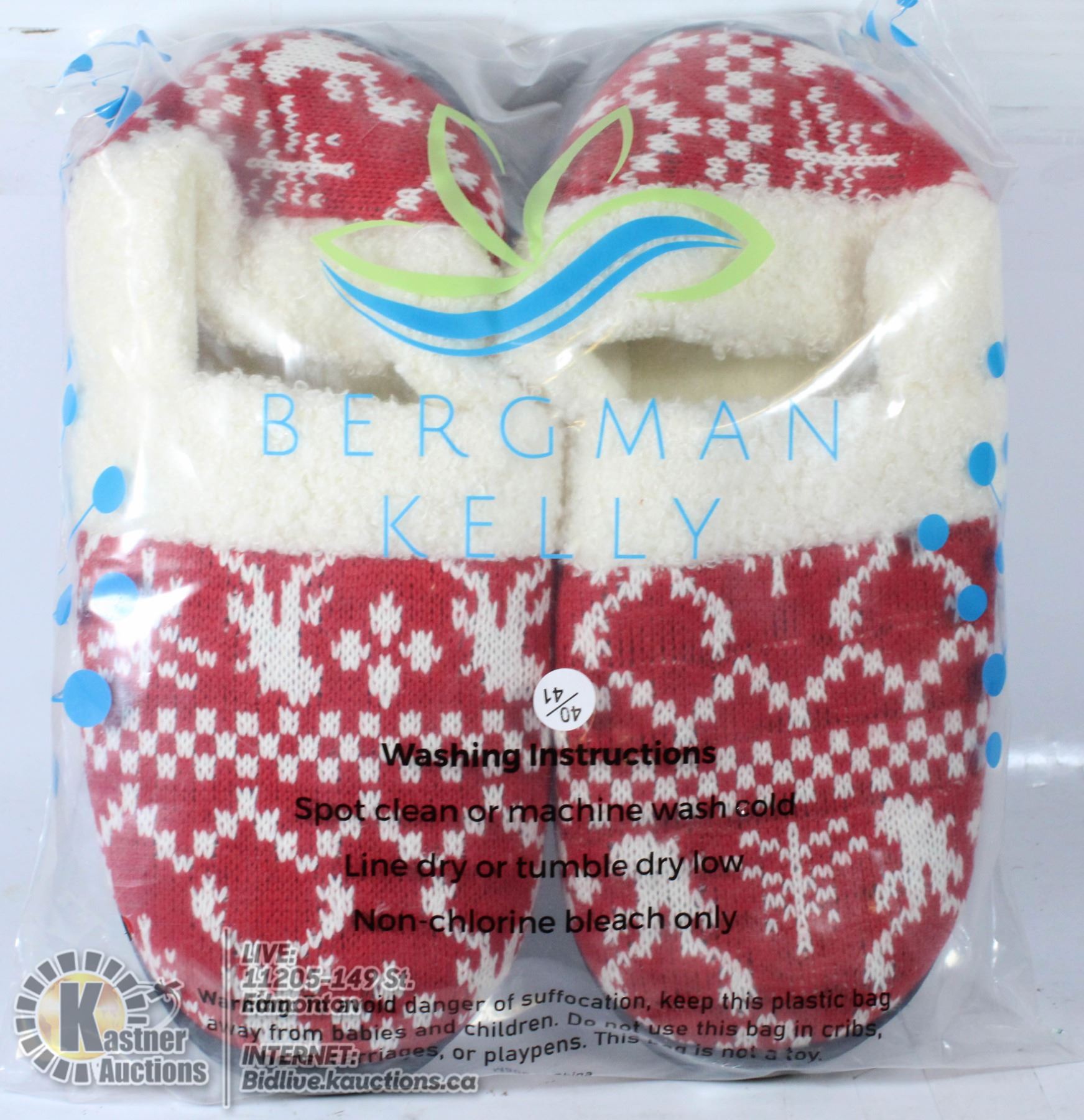 BERGMAN KELLY FLEECE MEMORY FOAM SLIPPERS SIZE 7-8