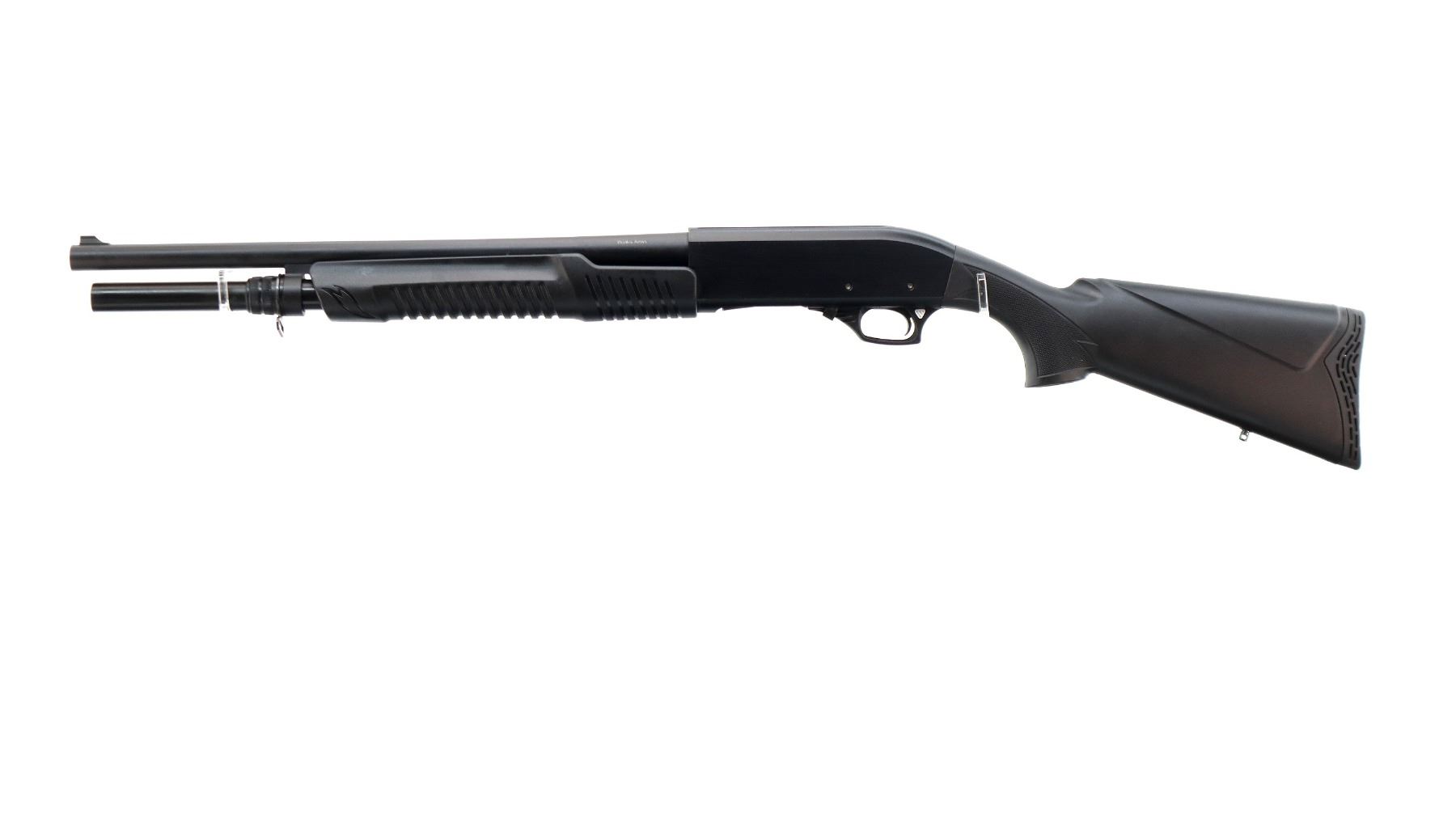Main Description: Blade front sight, Parkerized round barrel, grooved black alloy receiver. Two piece black synthetic stocks, grooved extended forearm, checkered pistol grip, black vented rubber recoil pad, grip cap, rear stud front swivel, extended magtube.