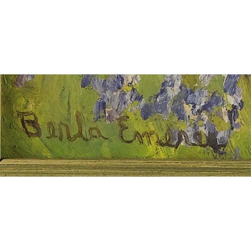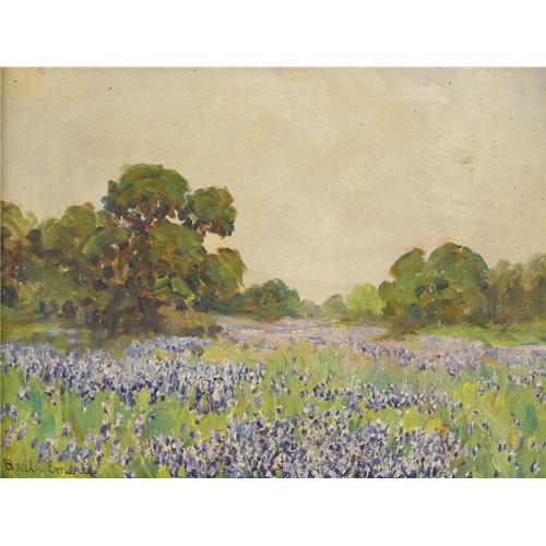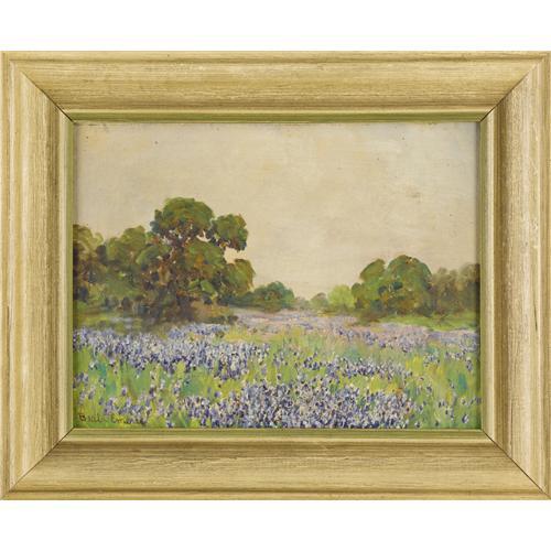 <B>BERLA EMEREE (1899-1948)</B></I><BR>Untitled Bluebonnet Landscape<BR>Oil on artist board<BR>9in. x 12in.<BR>Signed lower left<BR><BR>A letter of provenance from the artist is included with the lot.<BR><BR>Provenance:<BR>Mr. & Mrs. Everett A.R. Searl<BR>Don Kipp<BR><BR>Label verso:<BR>Venable's Fine Arts, Washington, D.C.<BR><BR> <B>Condition Report:</B> Excellent original condition. Painting would benefit from a surface cleaning. Period frame in excellent condition.<BR><BR><b>Shipping:</b> Requires 3rd Party Shipping (<a target="_blank" href="http://www.heritageauctions.com/common/shipping.php">view shipping information</a>)