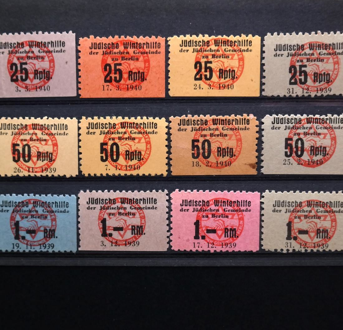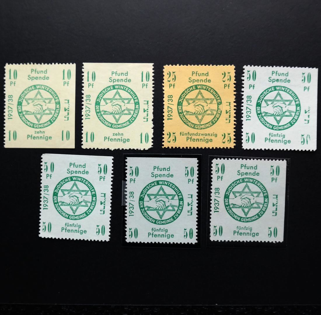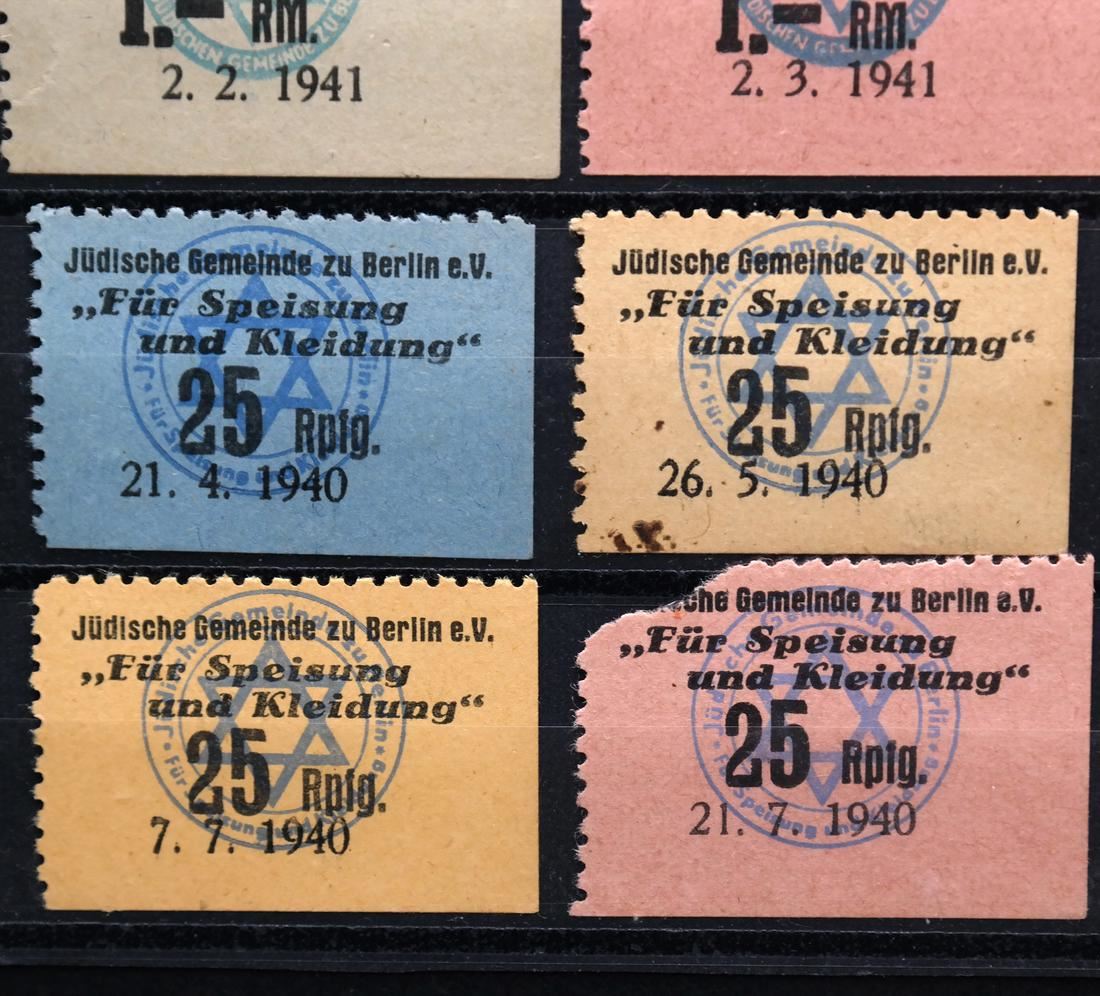 Includes 10pf, 25pf, 50pf and 1M chits/tokens with dates from 1937 through 1941, and on different colored papers and cards, generally sound and VF-XF.