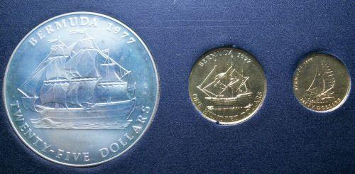 BERMUDA 1977 "SILVER JUBILEE SET" BU. Includes "Gold coins" (2) .3516 AGW and silver coins.