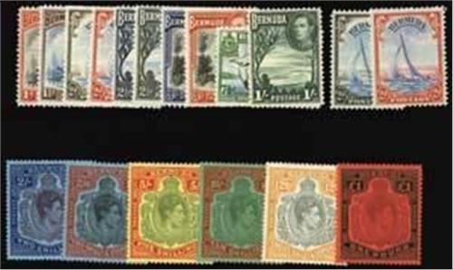 1938-53 1d to £1 basic set of 16 (SG 110-21d) plus additional examples of 2d (both colours) u/m (18)