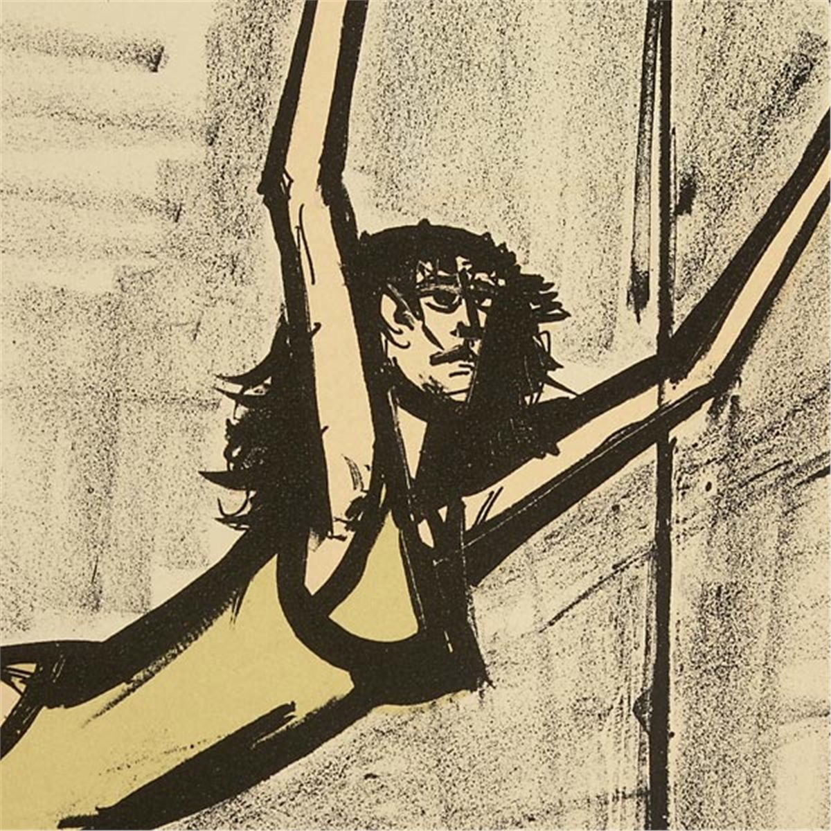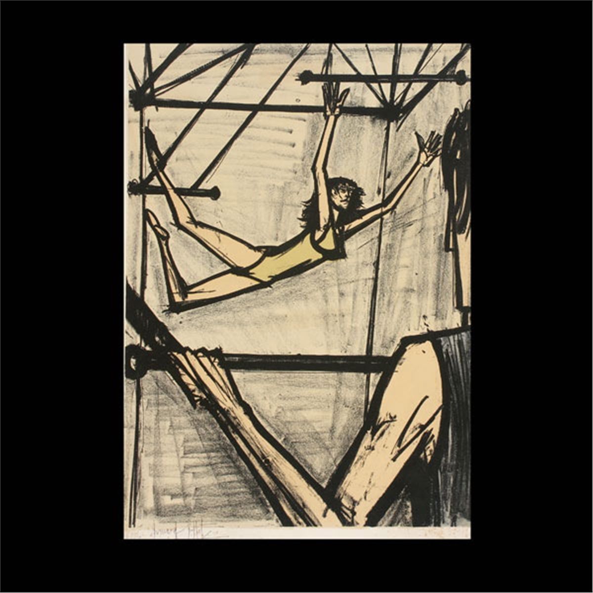 BERNARD BUFFET (French 1928-1999) Les Trapezistes Color lithograph Sheet: 28.25 x 20 inches/ 71.8 x 50.8 centimeters Signed in ink lower left "Bernard Buffet" Numbered in pencil lower left "116/120" From the portfolio, MON CIRQUE In fair condition: Lower corners have foxing