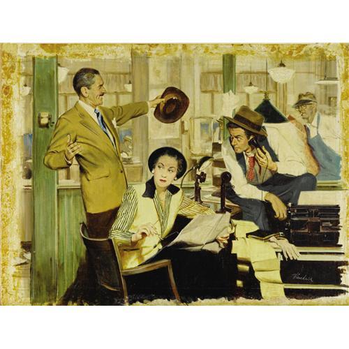 <B>BERNARD L. D'ANDREA (1923 - )</B></I><BR>Original Illustration for the <I>Saturday Evening Post</B></I><BR>Mixed media on board<BR>20 x 26in.<BR>Signed lower right<BR><I>Saturday Evening Post</B></I> job label to reverse<BR>1 Items <BR><BR><B>Condition Report:</B> Very minor cracking throughout, nearly indiscernible. Significant cracking in areas where lamps are illustrated. Wear to edges of the canvas board beyond the image-proper. Adhesive remnants to margins.