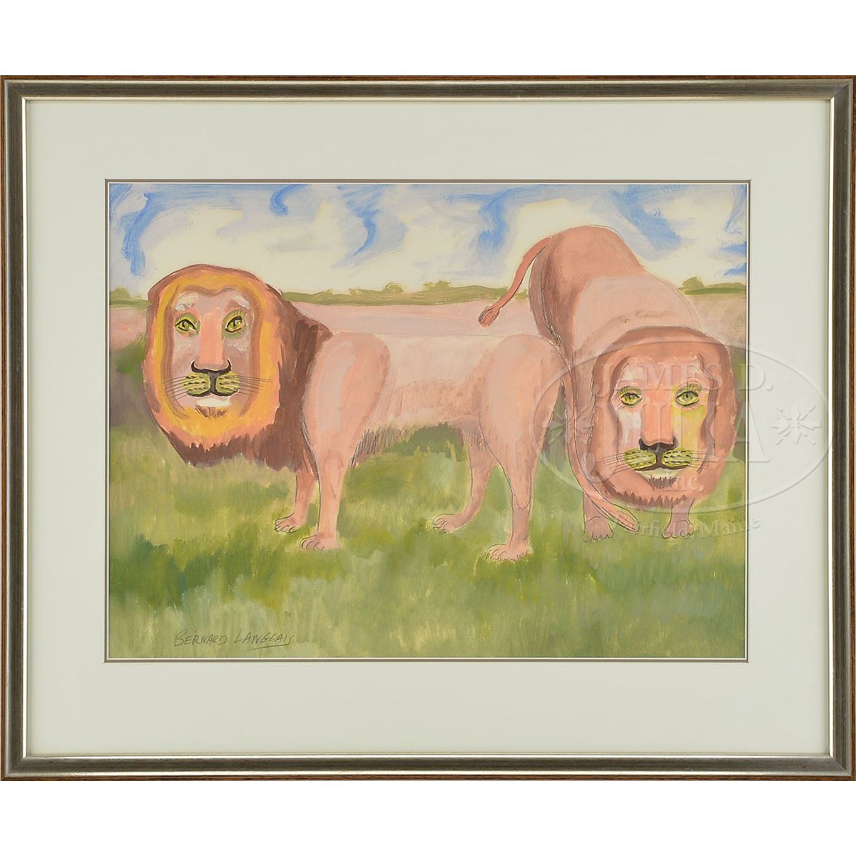 BERNARD LANGLAIS (American, 1923-1977) "TWO LIONS"