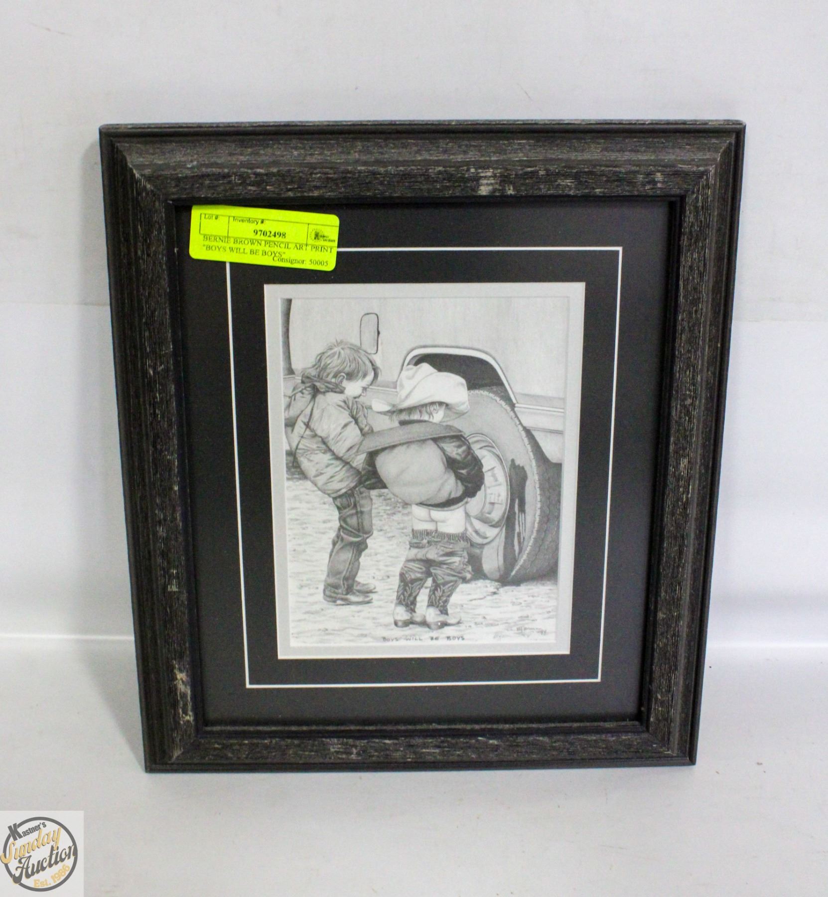 BERNIE BROWN PENCIL ART PRINT "BOYS WILL BE BOYS"